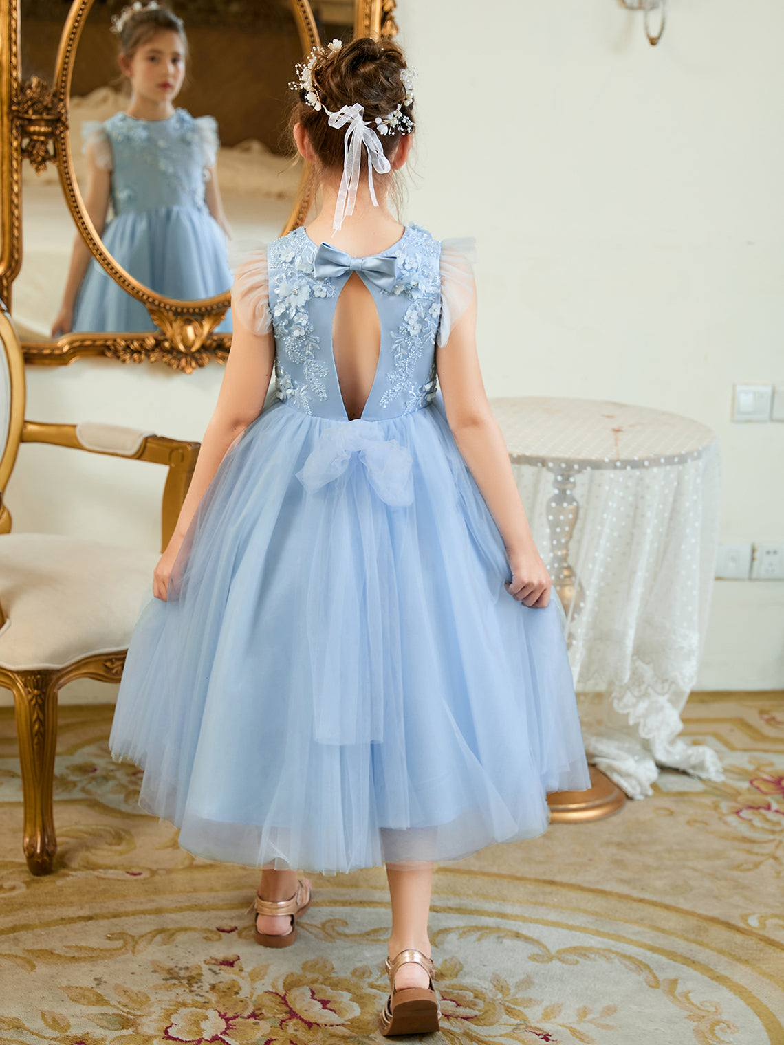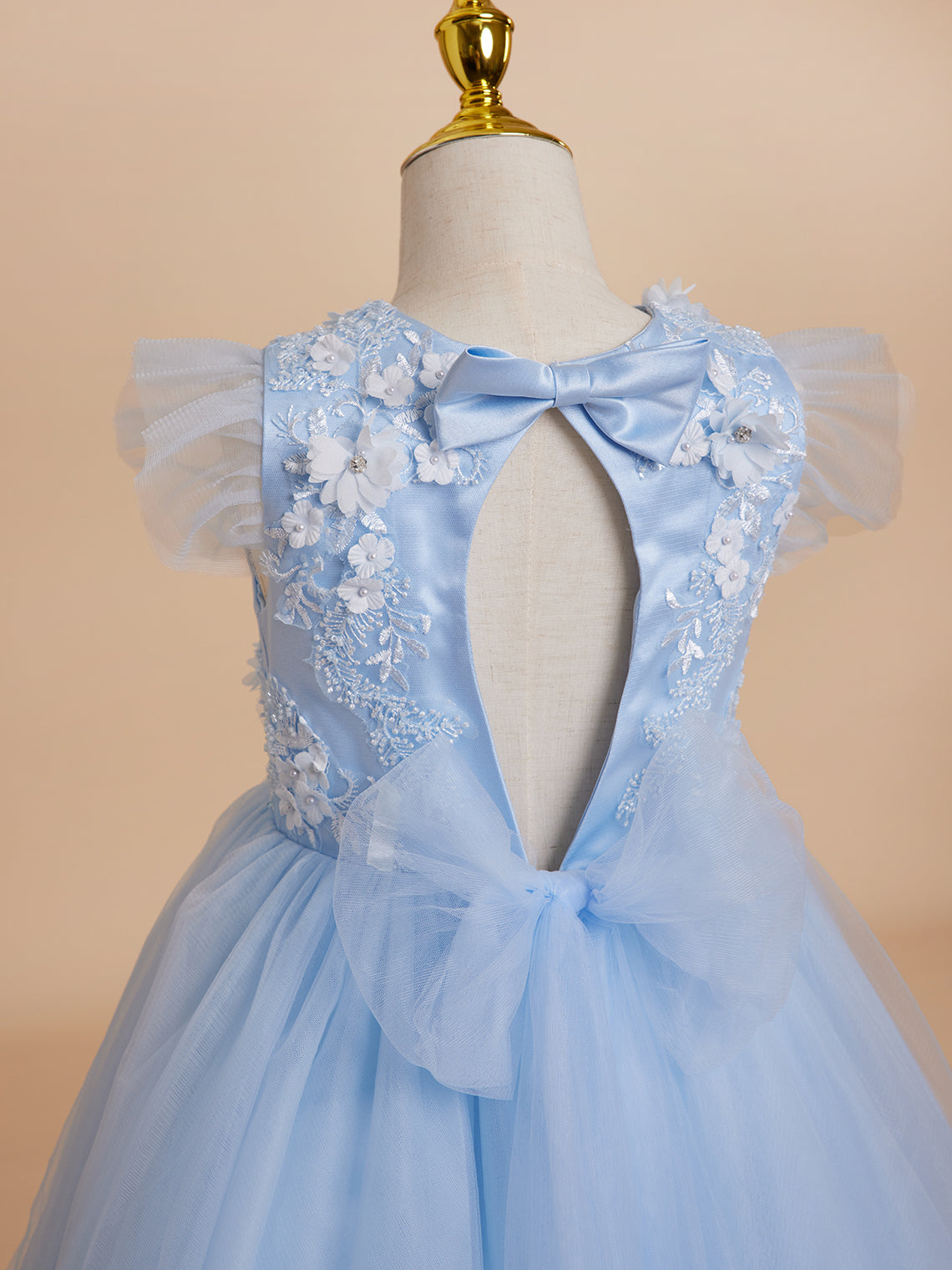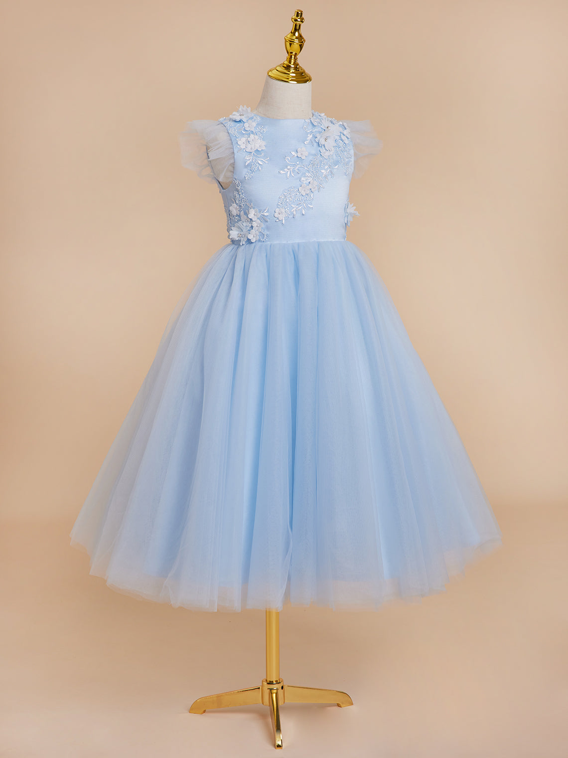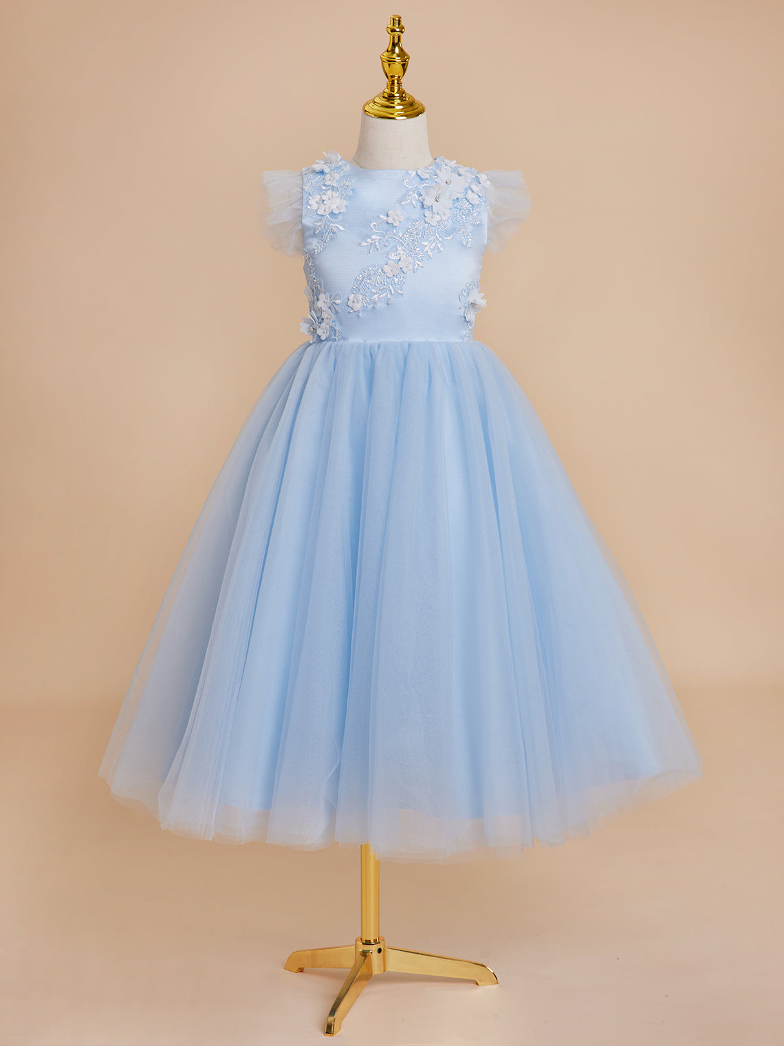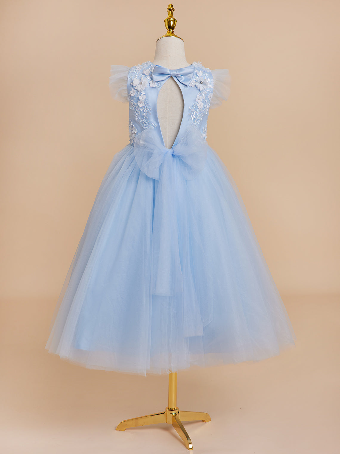 Vestido de baile/princesa de satén y tul azul hasta la rodilla (2003225970)