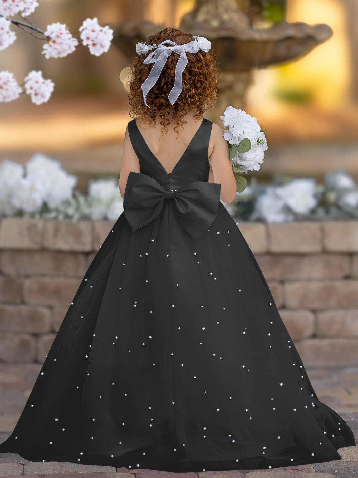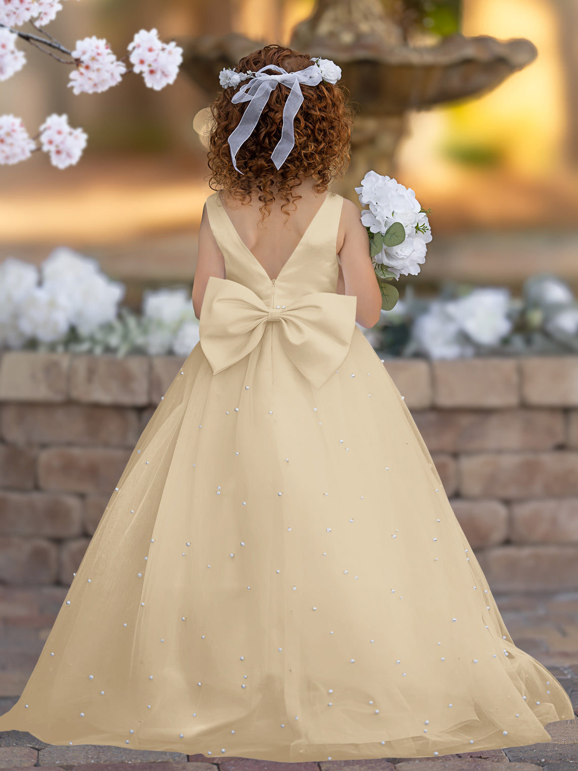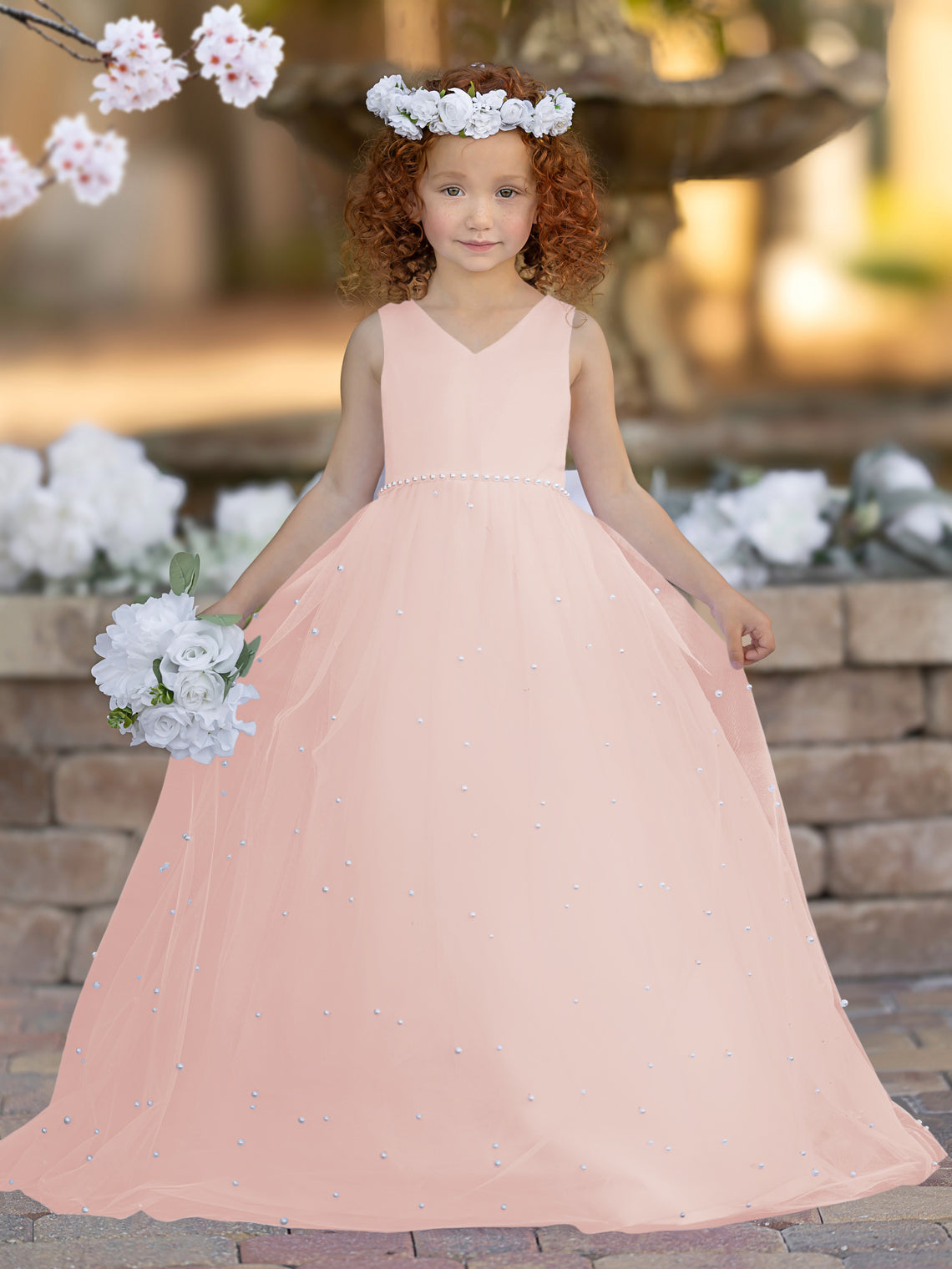 Elegante vestido de princesa de satén y tul para niña de las flores
