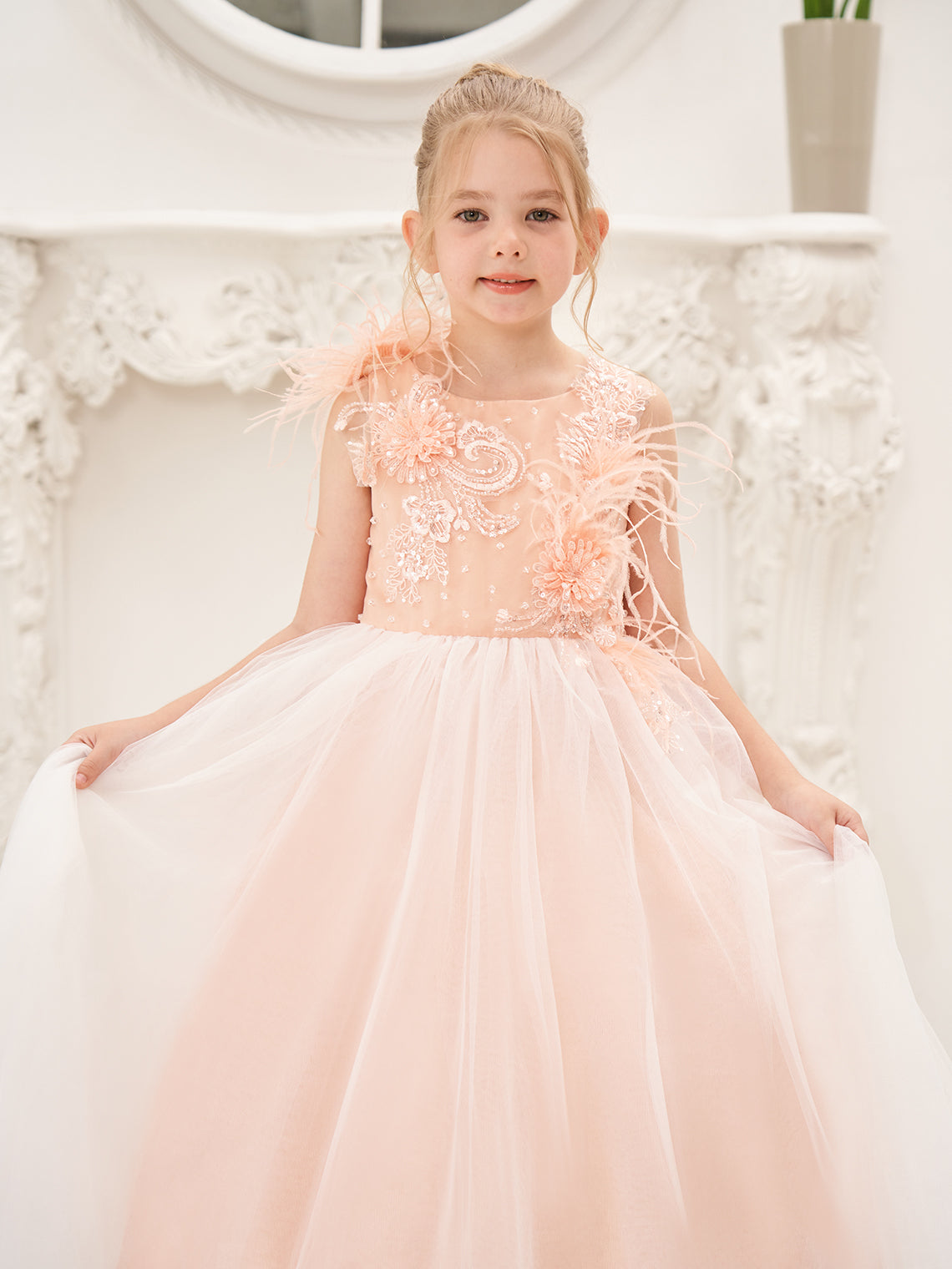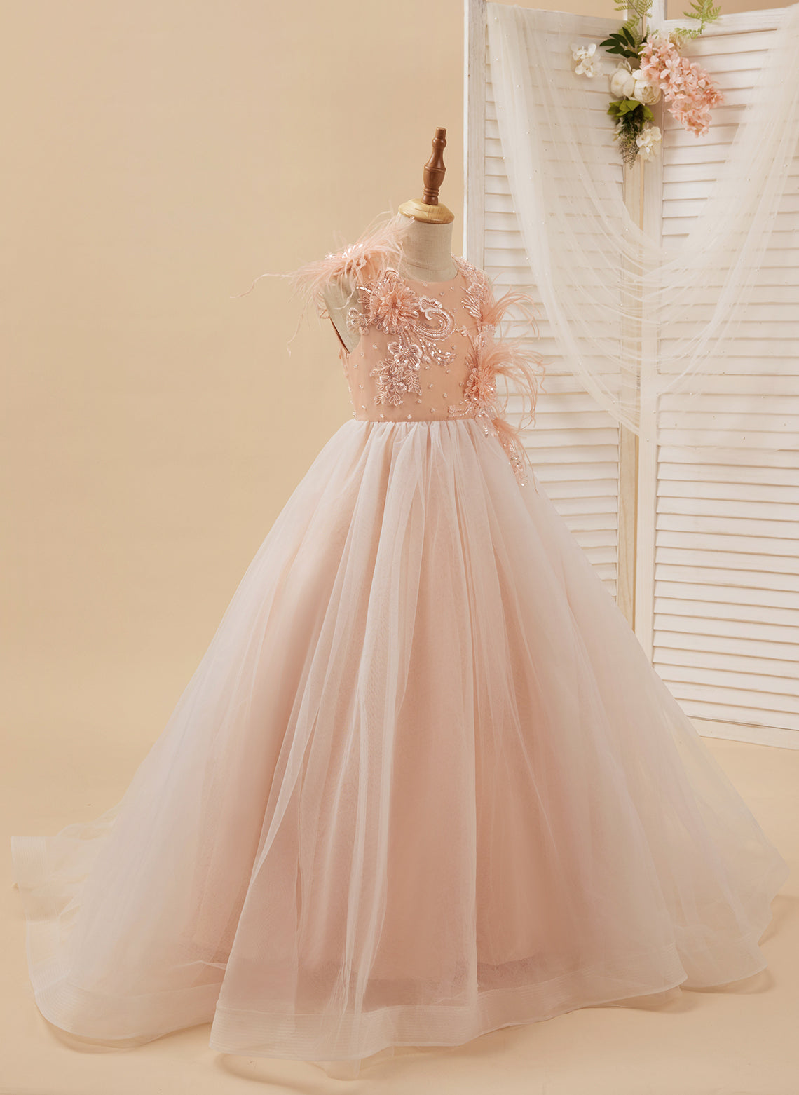 Vestido de princesa rosa para niña de las flores, estilo gala/con cola de tul.