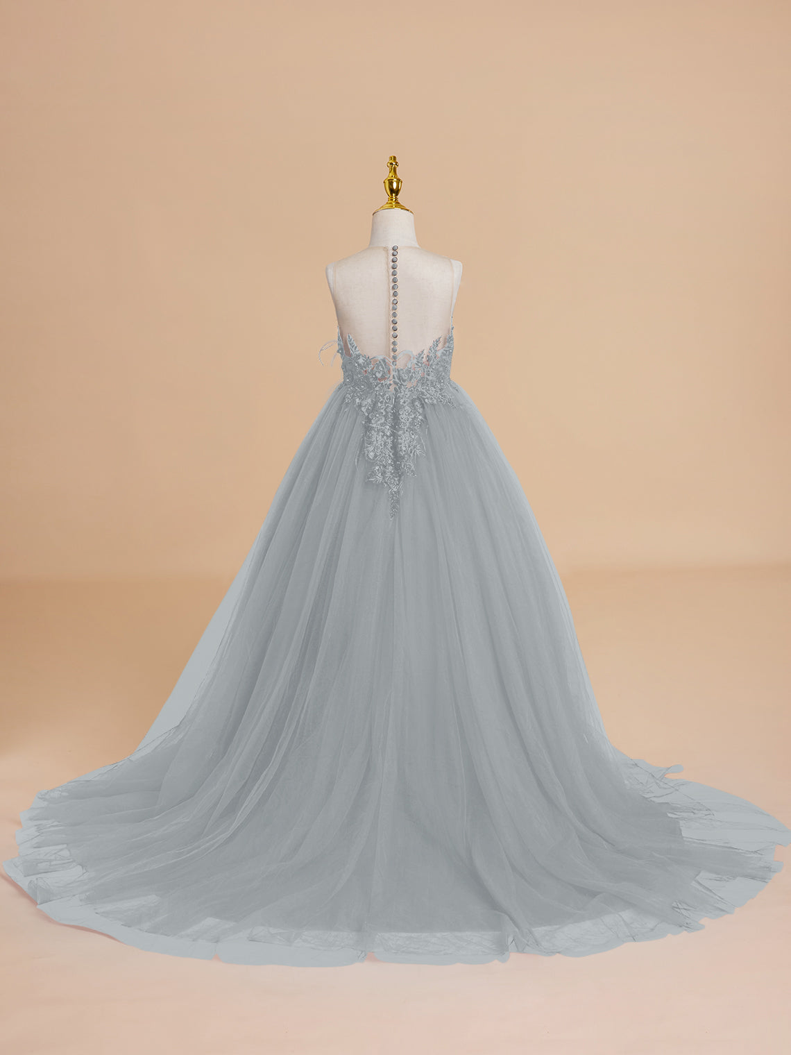 Vestido de princesa/vestido de princesa con cola de tul para niña de las flores