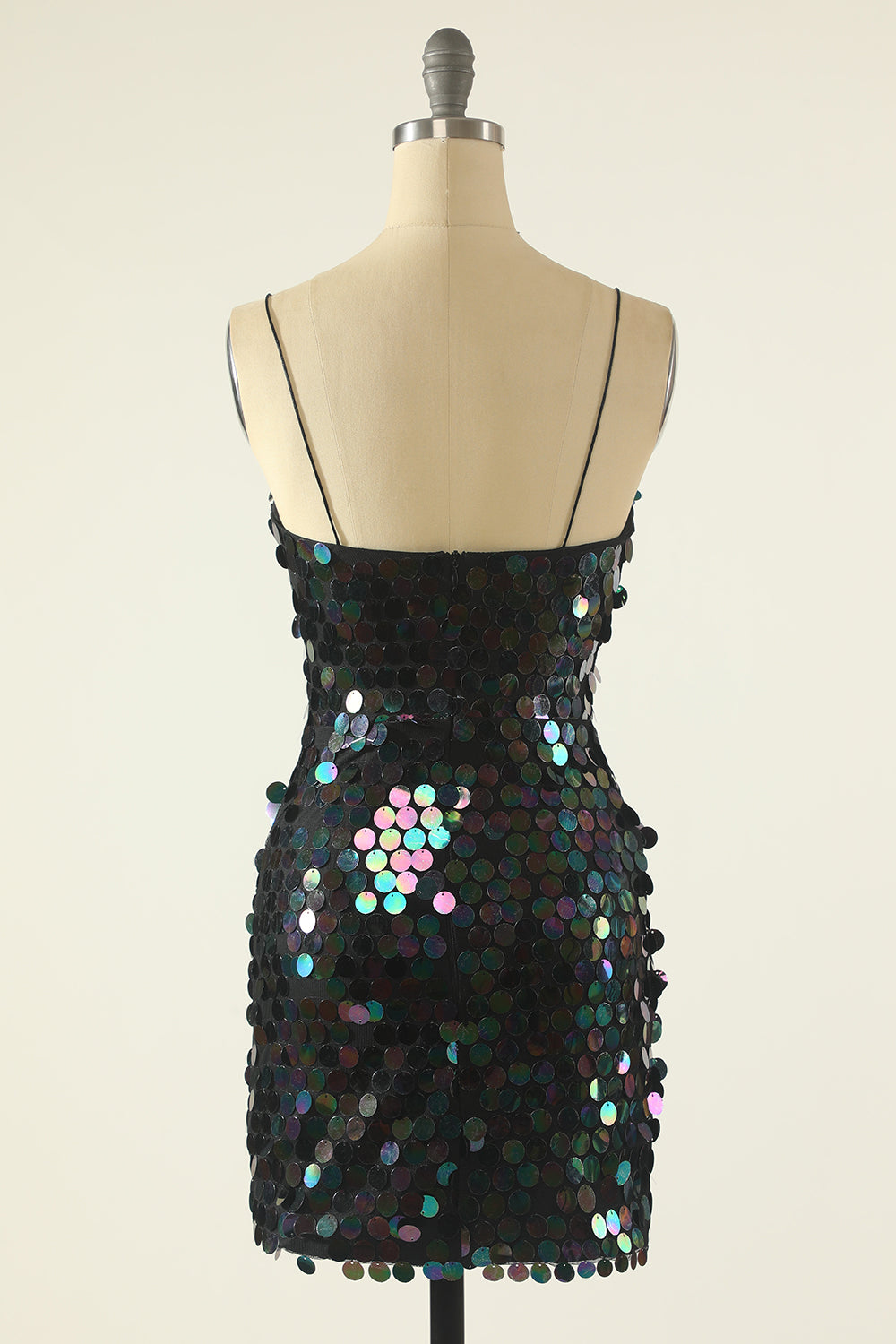 Vestido de cóctel con lentejuelas y tirantes finos