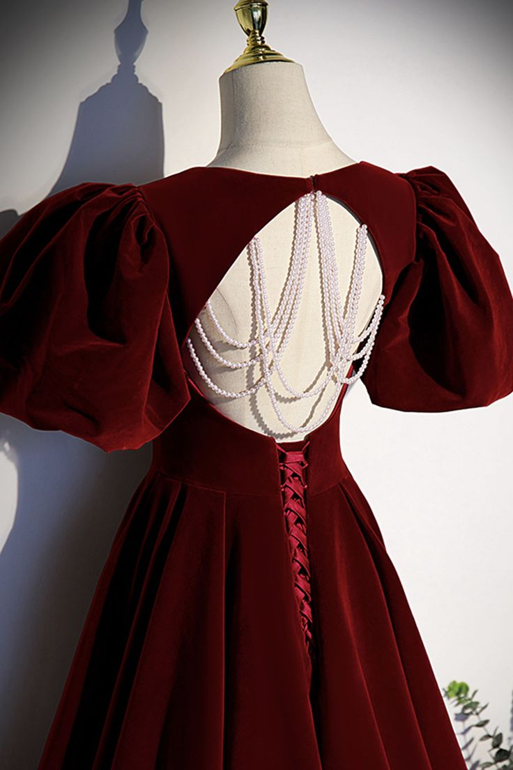 Vestido largo de noche de terciopelo burdeos para baile de graduación Y6348