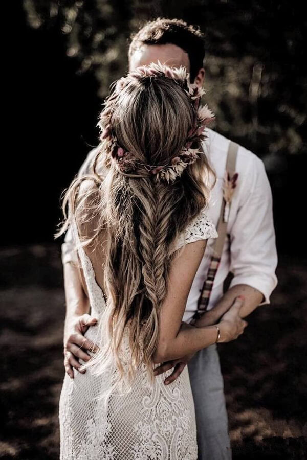Haz que tu día especial sea aún más especial con este elegante vestido de novia de encaje color marfil con corte sirena. Con un escote impactante y una falda de estilo bohemio, este exquisito vestido de novia para bodas en la playa sin duda...