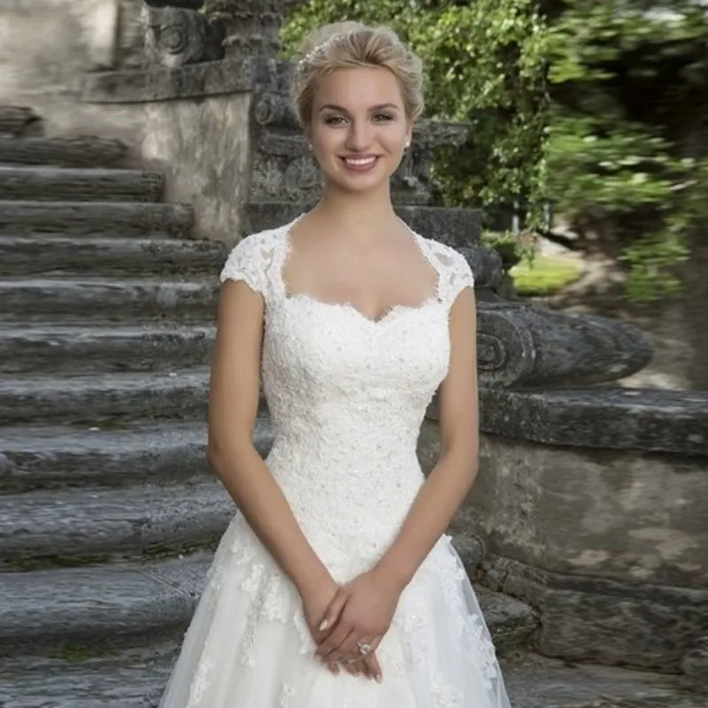 Vestidos De Novia De manga casquillo cuello increíble Vestidos De Novia apliques Vestido De Noiva bata De encaje De mariée