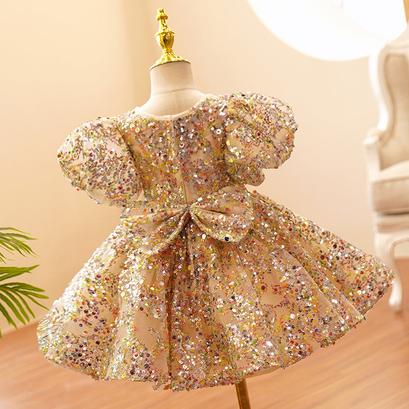 Vestido de fiesta de cumpleaños para bebé niña, de tul y lentejuelas color oro champán
