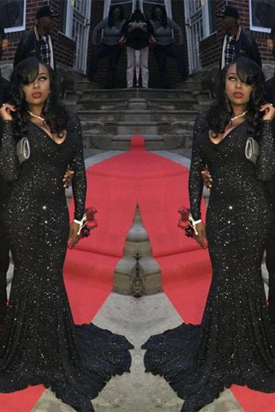 Temporada: Primavera Escote: Escote en V Silueta: Sirena Estilo: Elegante Tren: Tren de la Corte Largo de manga: Manga larga Cintura: Baja Adorno: Lentejuelas