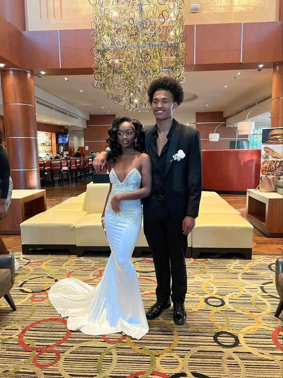 Vestido de noche blanco sirena encantador, vestido de noche blanco Y6512