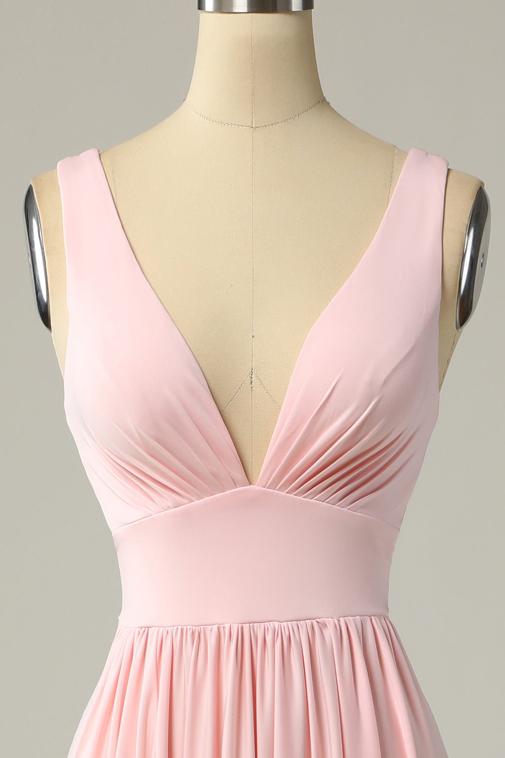 Vestido largo de fiesta amarillo clásico de corte A con escote en V y abertura frontal