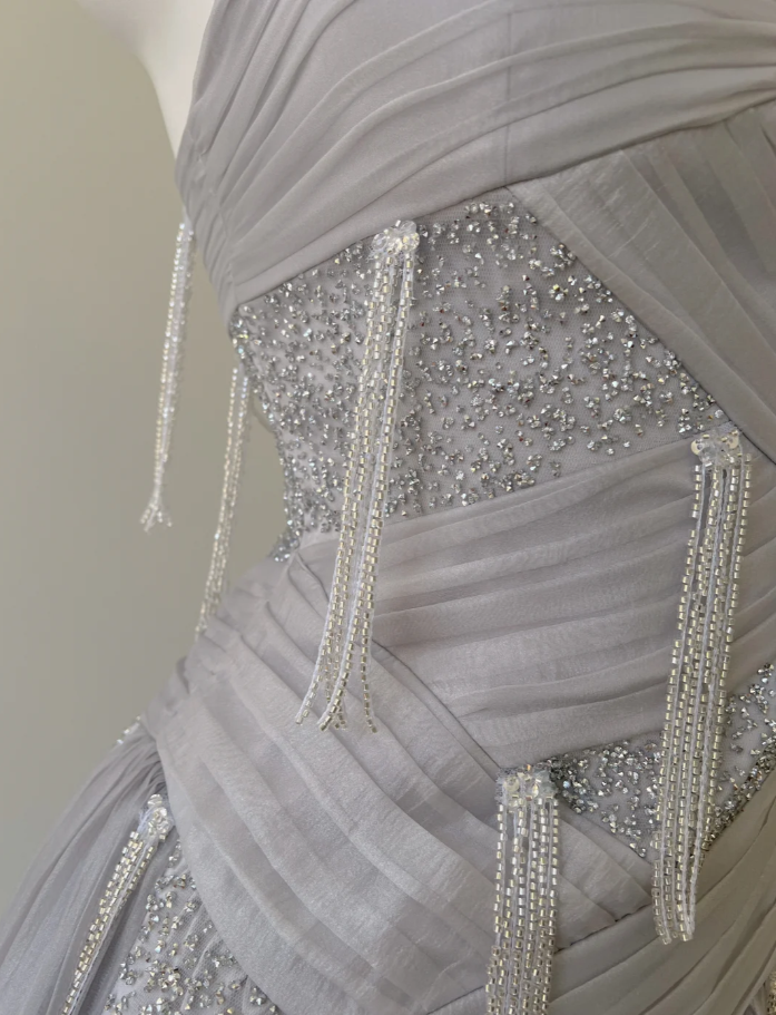 Elegante vestido de fiesta morado con lentejuelas, tul, cuentas y borlas, corte en A, modelo Y8586