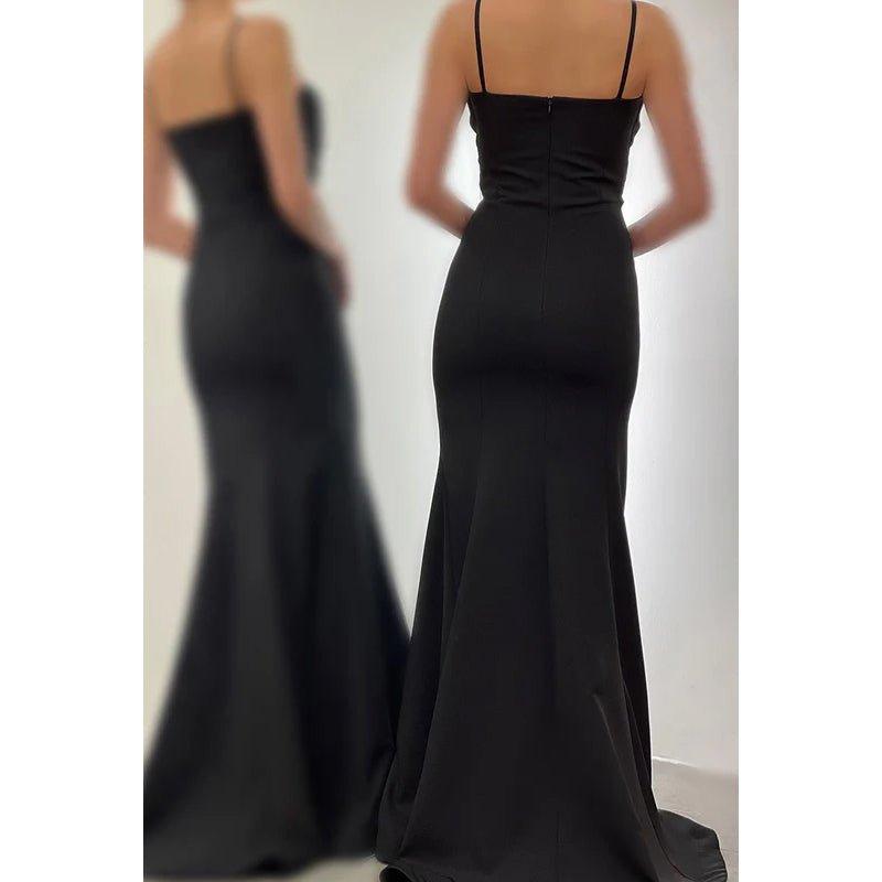 Vestido de fiesta de alta costura con tirantes finos, corte trompeta y escote corazón, con pedrería