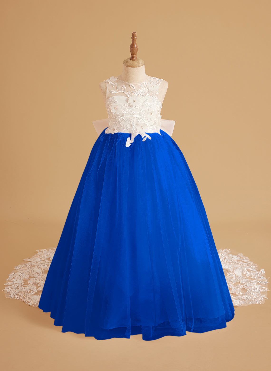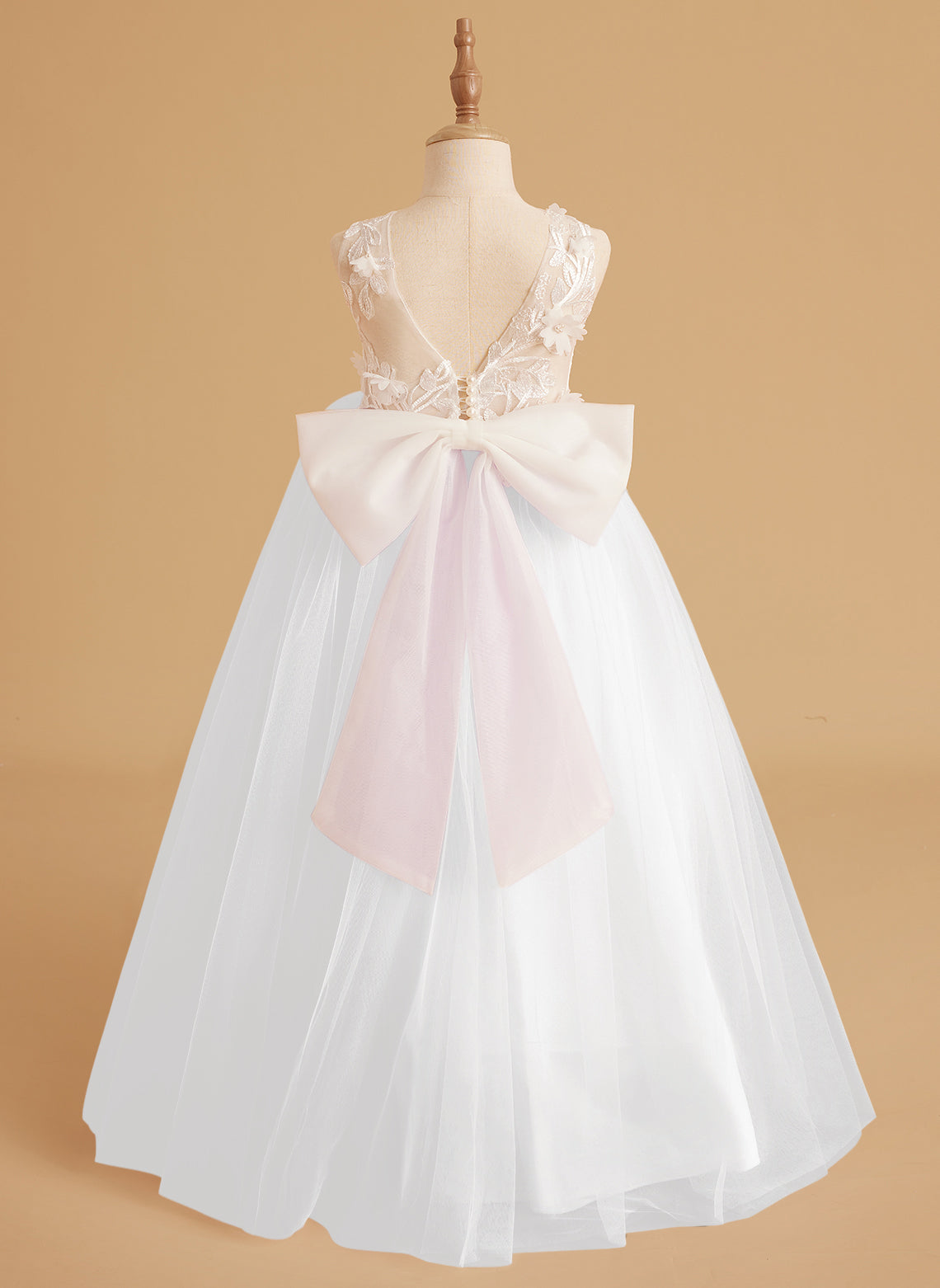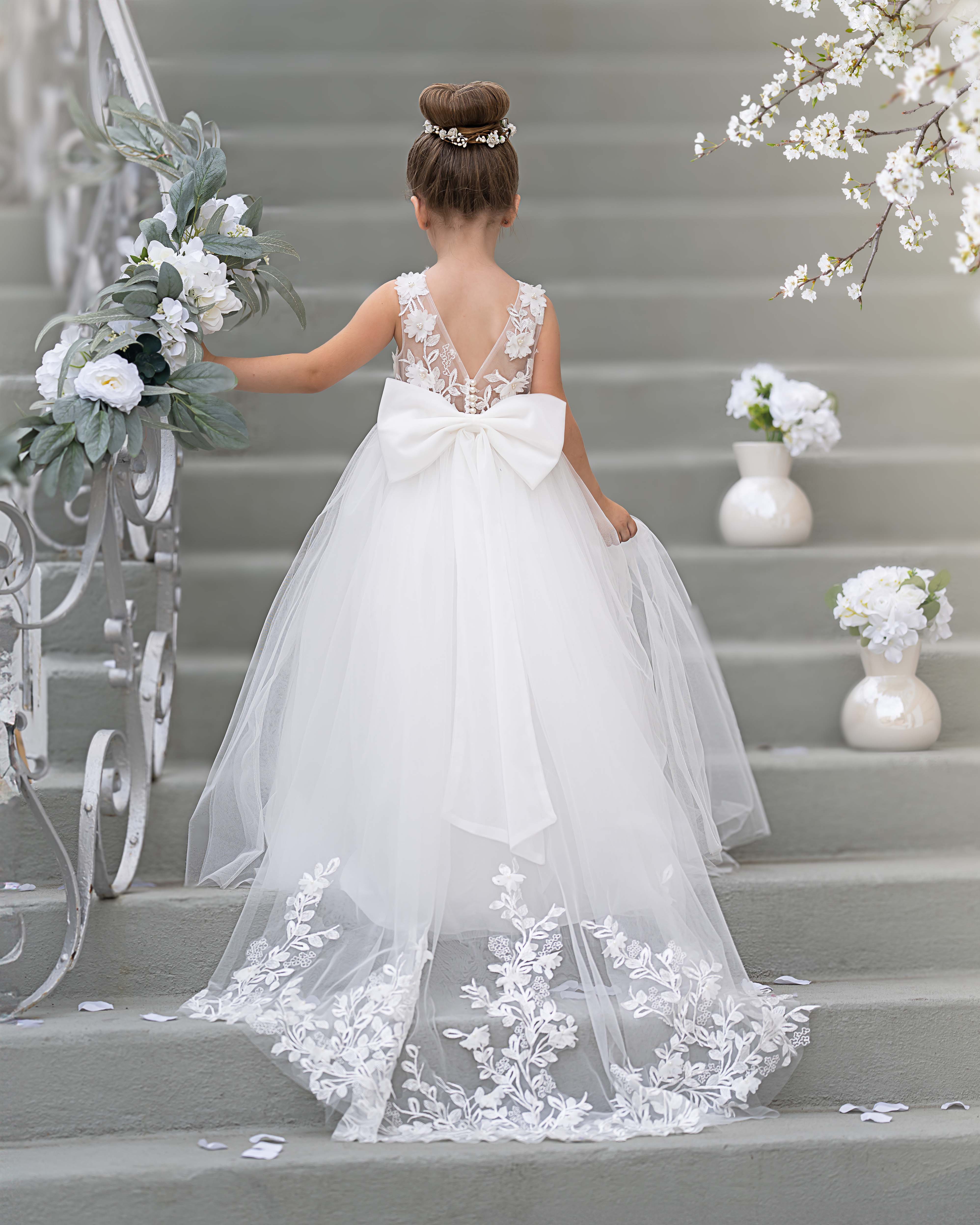 Vestido de niña de las flores sin mangas de encaje y tul con cuentas, estilo princesa de ensueño