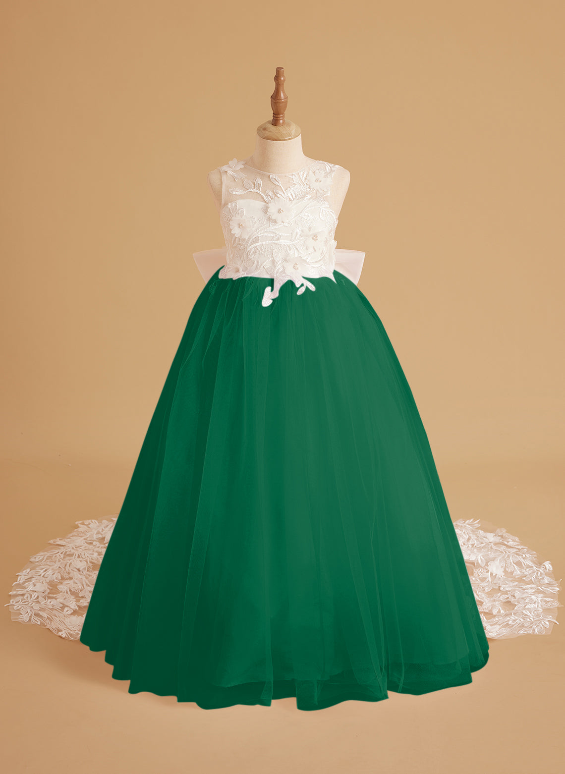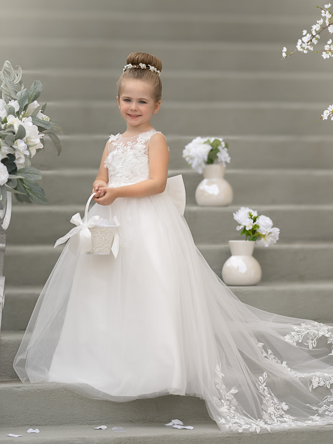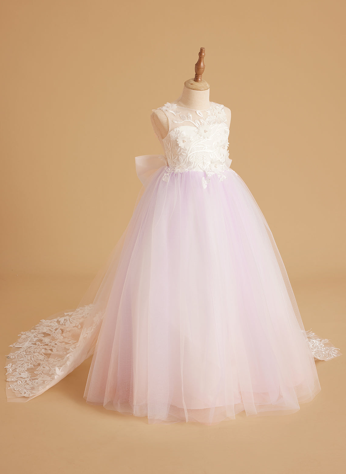 Vestido de niña de las flores sin mangas con cola desmontable de princesa de ensueño