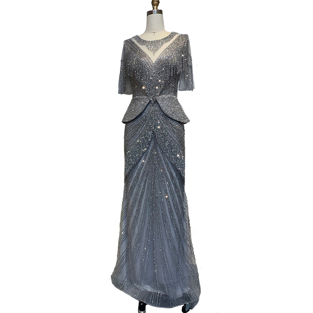Vestido de noche de sirena con borlas y cuentas color beige de Dubái, diseño 2025, manga corta, vestido formal sexy de lujo LA70342