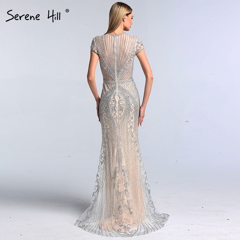 Vestido de noche sexy Dubai Grey Full Diamond 2025, vestido formal de sirena de lujo con mangas casquillo LA60934