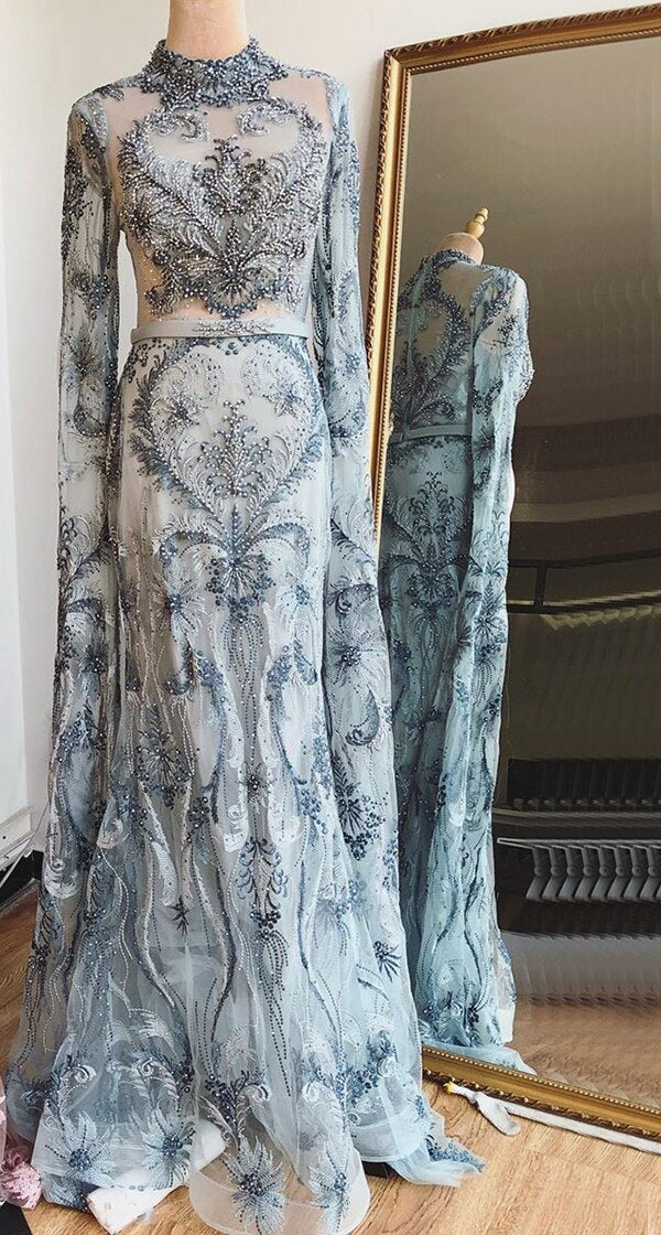 Vestido de noche de lujo Dubai Pink Mermaid 2025, manga larga, con cuentas de cristal, modelo LA70595