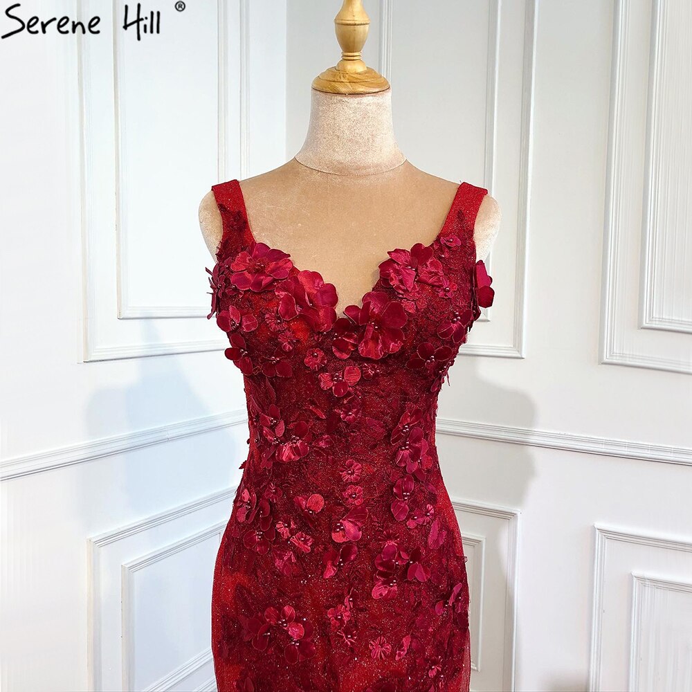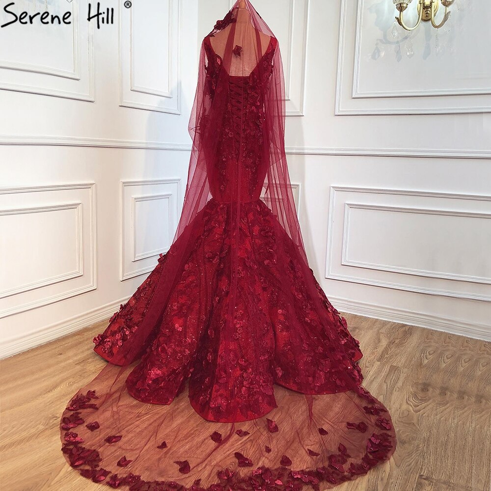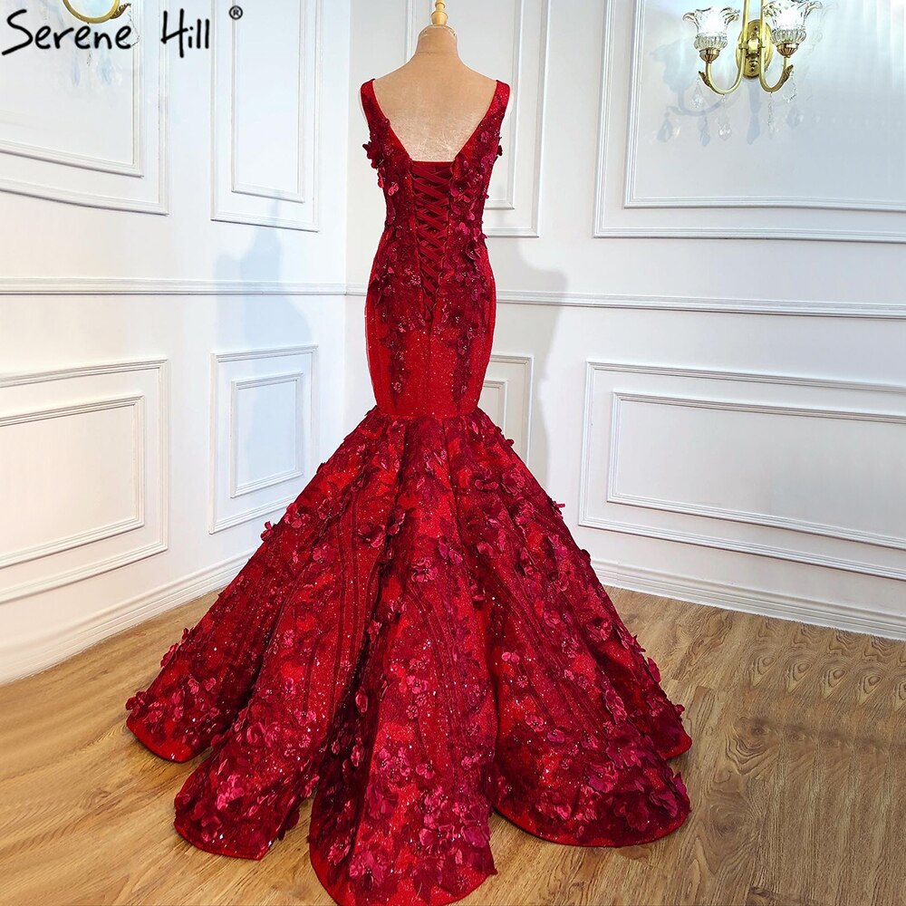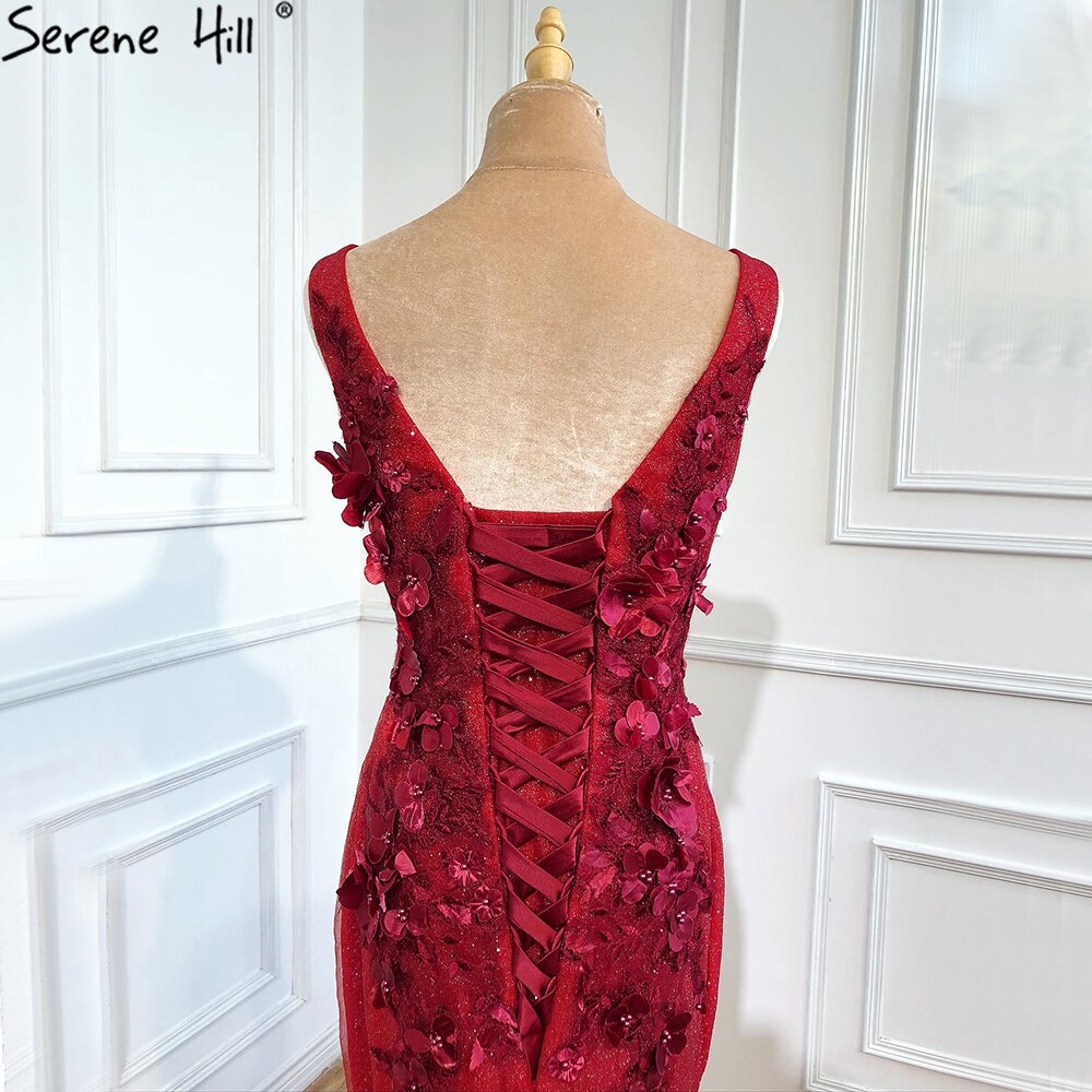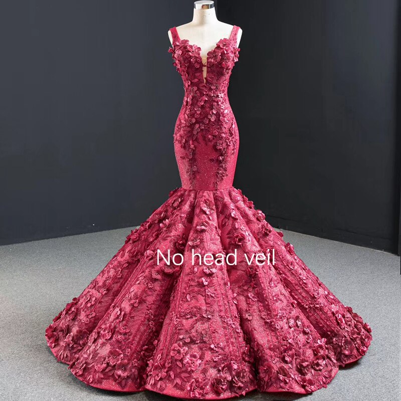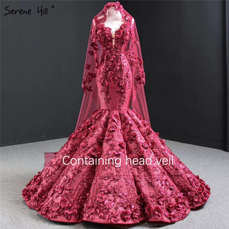 Dubai Wein Rot Sexy Ärmellose Brautkleider 2025 Meerjungfrau Handgemachte Blumen Perlen Braut Kleider HM67110 Nach Maß