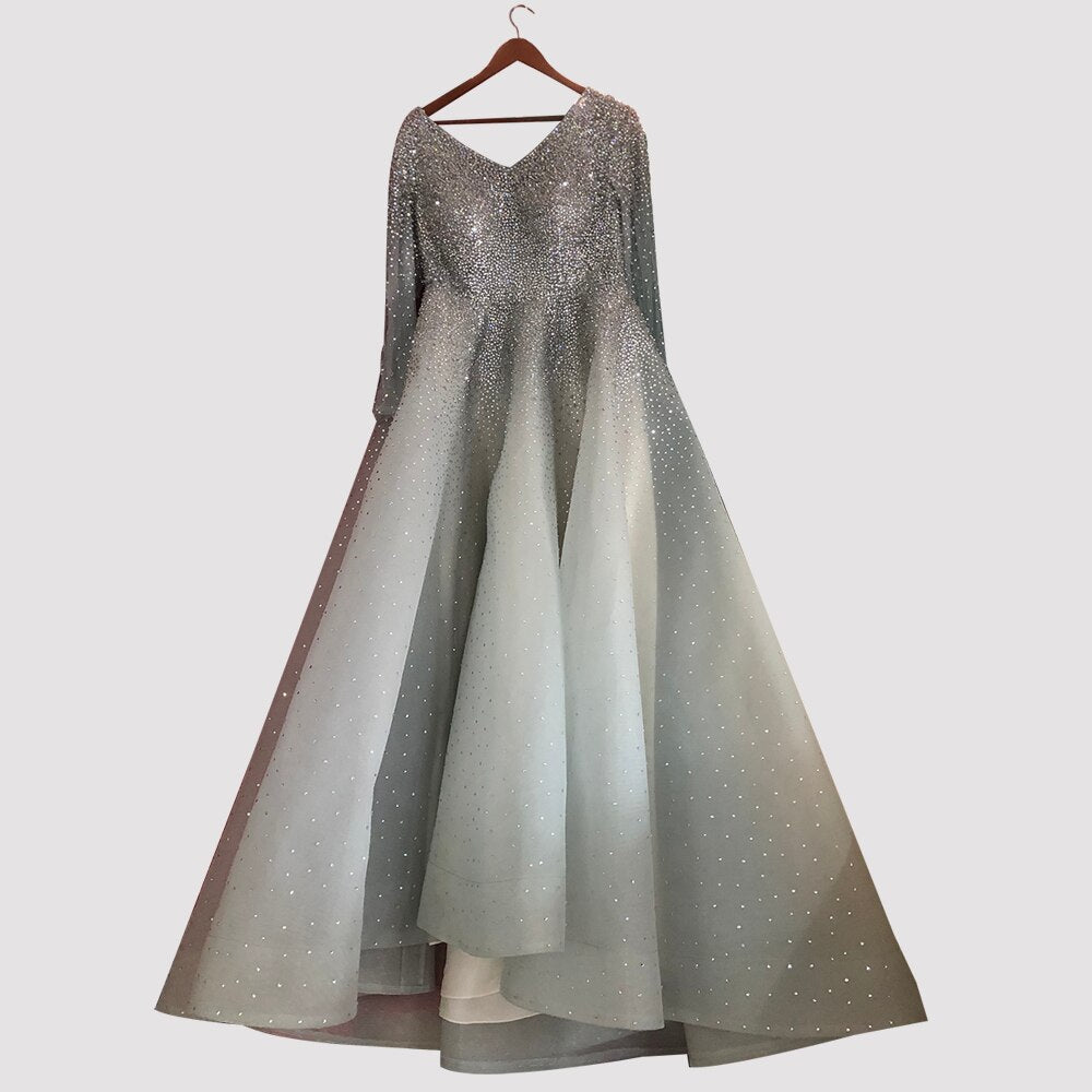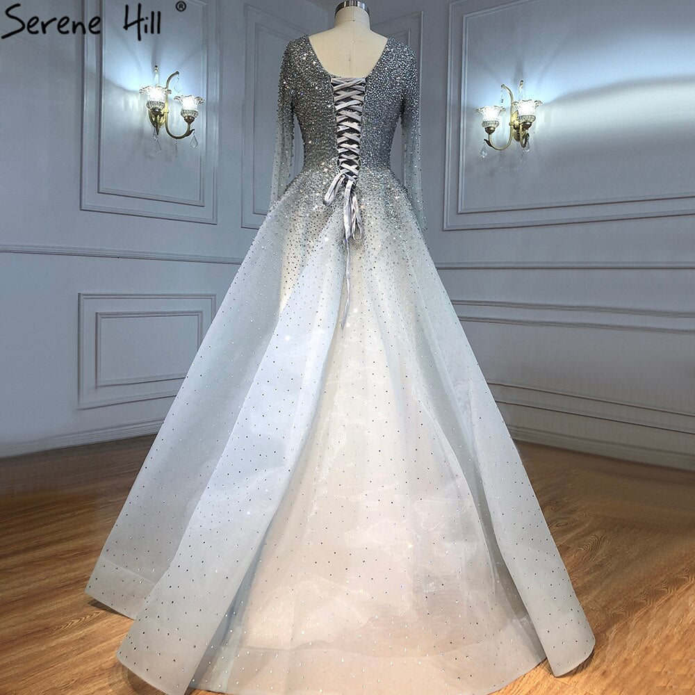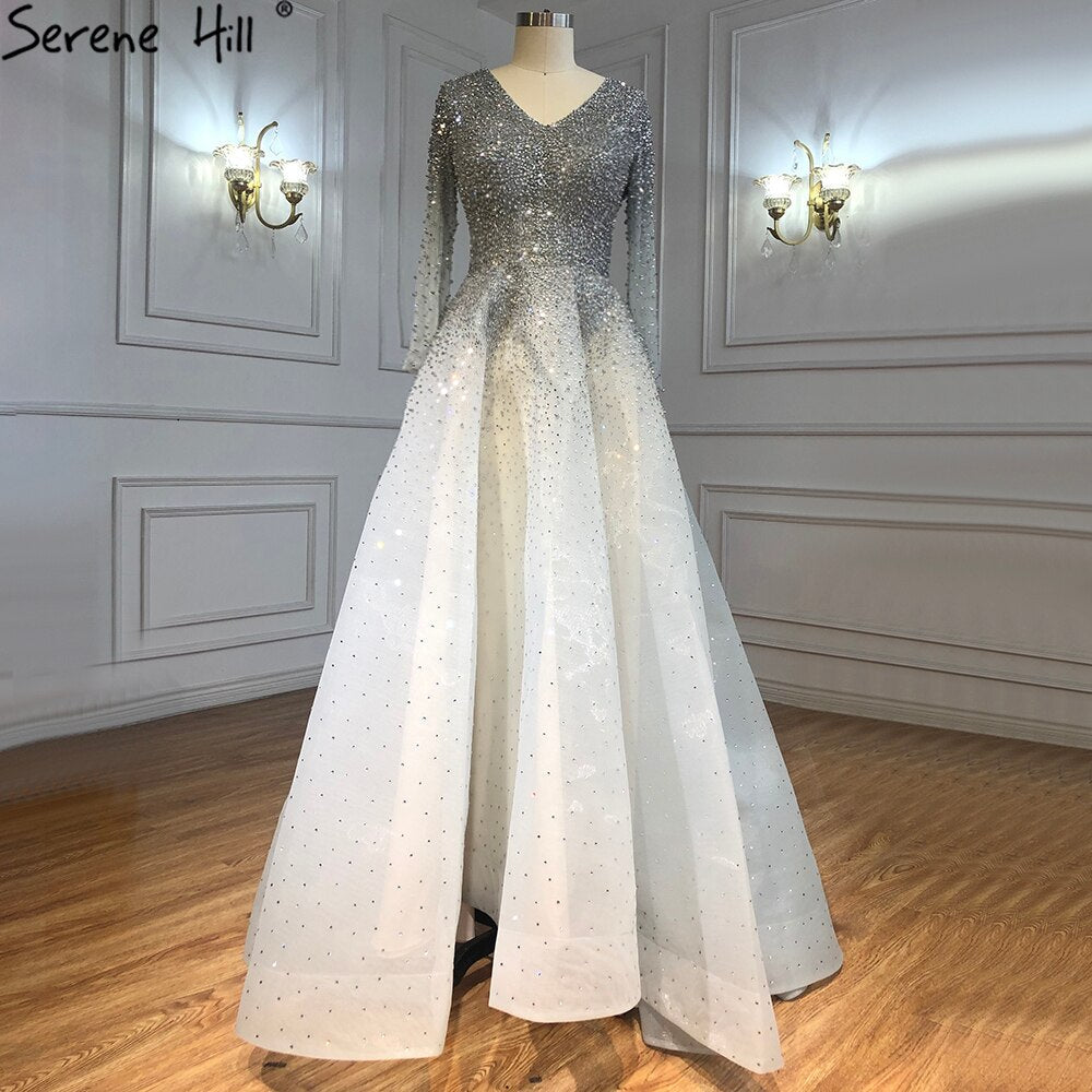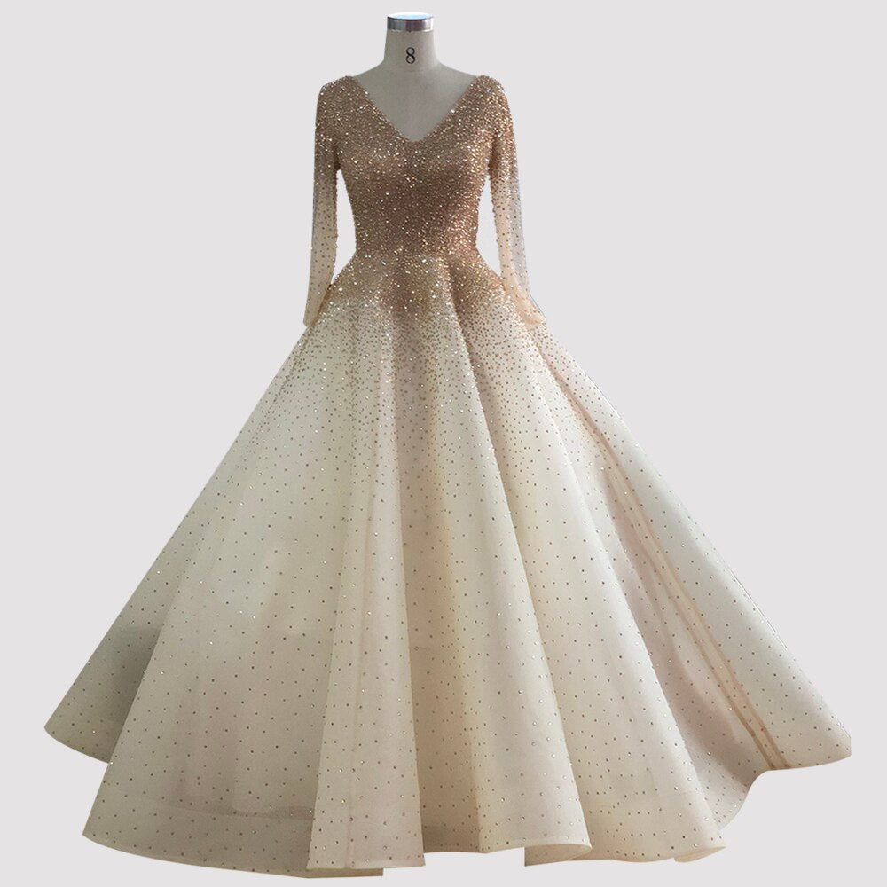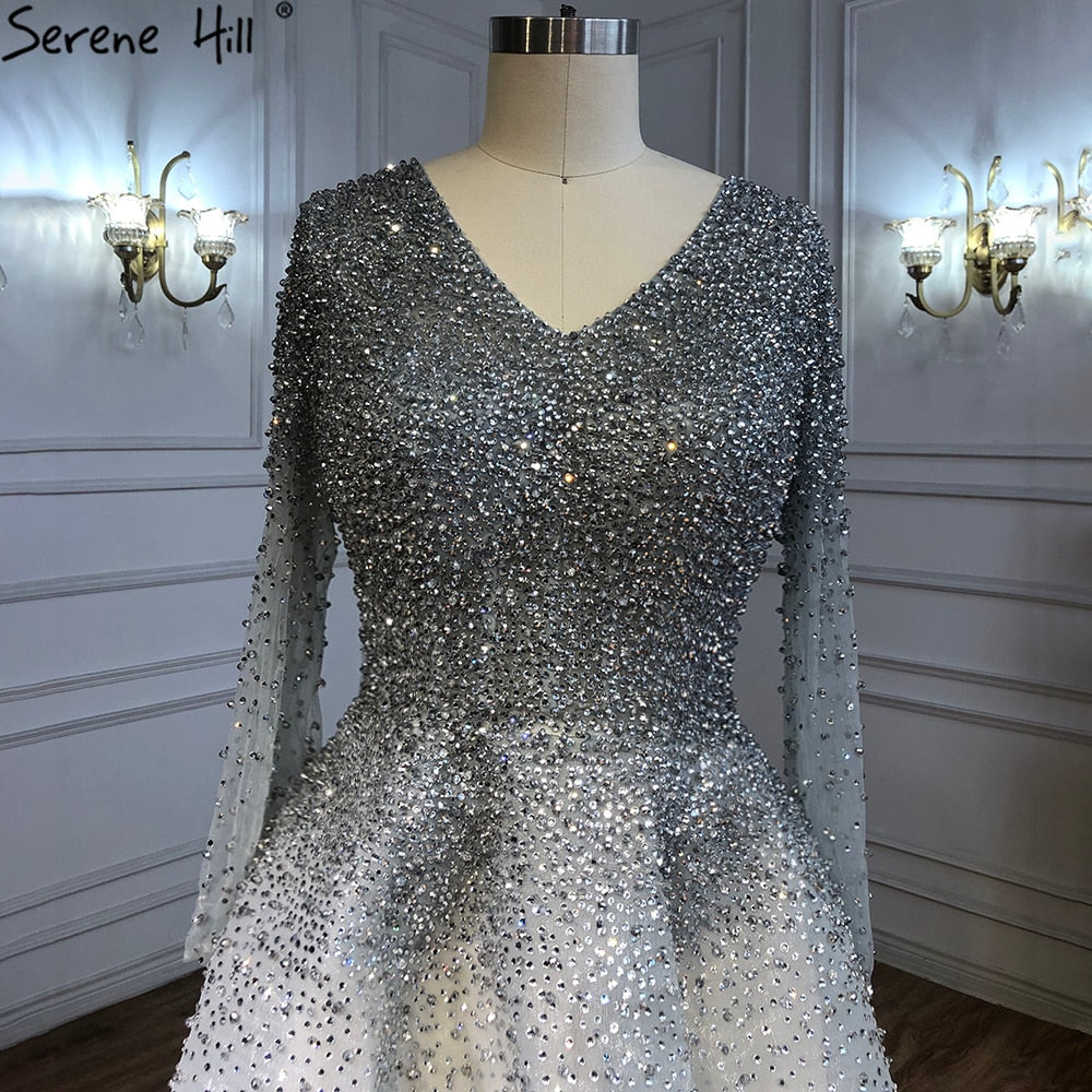 Vestidos de noche de lujo, sexis, de color rojo vino tinto, con escote en V, manga larga y cristales, diseño LA70272 (2025).