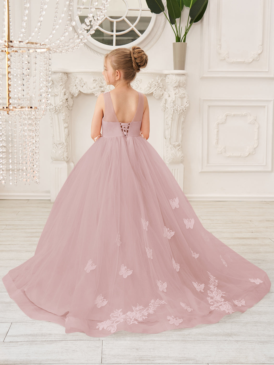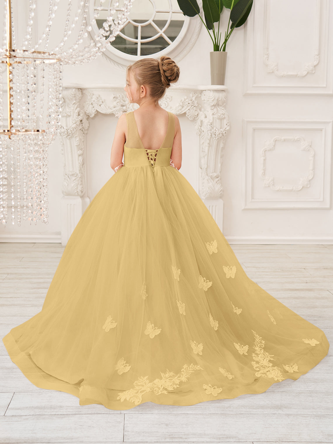 Nota: El color de los adornos (como encaje, flores, fajín, etc.) será el que se muestra en la imagen, independientemente del color que elija para su vestido.