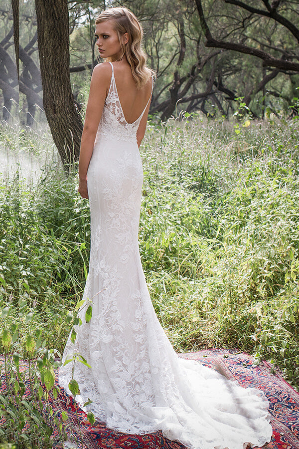 Haz que tu día especial sea aún más especial con este elegante vestido de novia de encaje color marfil con corte sirena. Con un escote impactante y una falda de estilo bohemio, este exquisito vestido de novia para bodas en la playa sin duda...