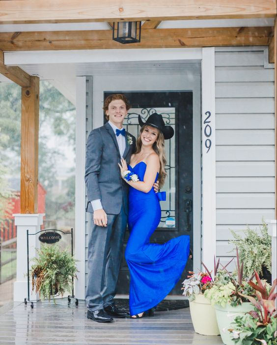 Elegante vestido de sirena azul real para baile de graduación. Vestido de noche azul real Y7193