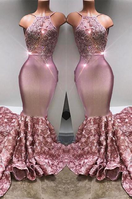Espacios: Jardín / Exterior Temporada: Verano Escote: Halter Silueta: Sirena Estilo: Elegante Tipo de cuerpo: Señorita Tren: Tren de la Corte Largo de manga: Sin mangas Cintura: Baja Adorno: Encaje. Apliques