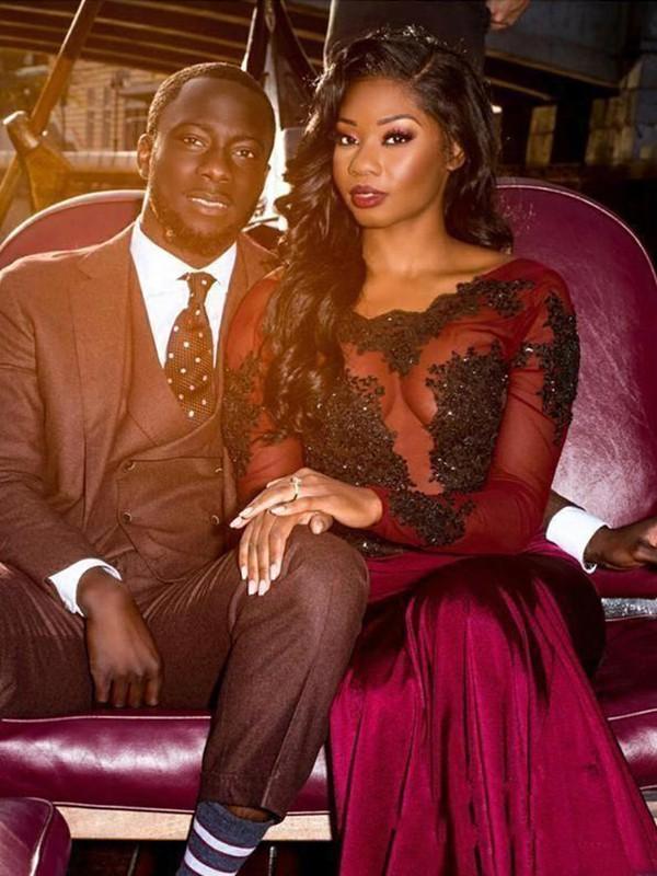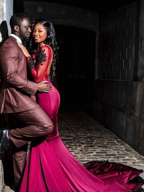 Escote: Redondo Material: Tul Silueta: Sirena Largo de manga: Manga larga Largo del dobladillo: Hasta el suelo Adornos: Apliques