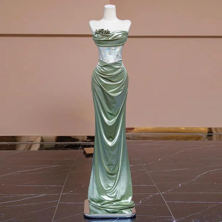 Vestido de noche plisado de sirena sin tirantes, glamuroso, para baile de graduación formal Y7989