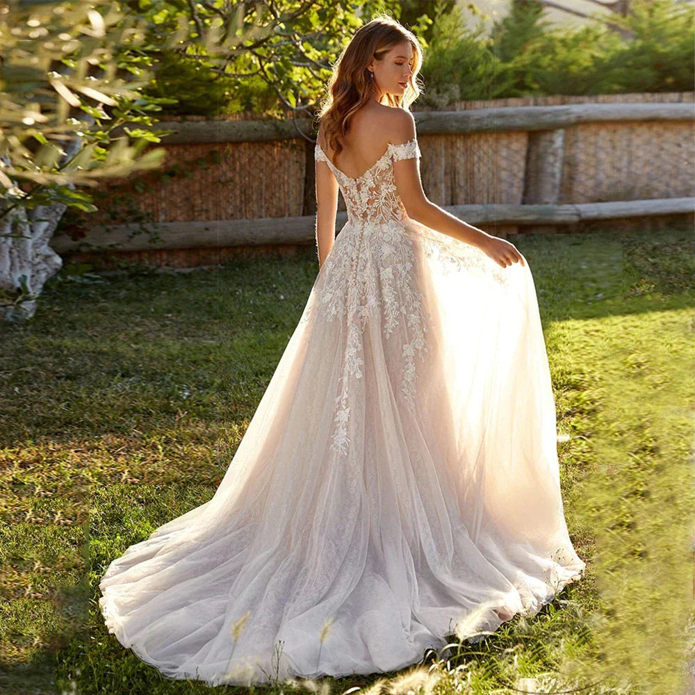 Preciosos vestidos de novia de encaje para la playa, con hombros descubiertos, apliques, corte en A, estilo boho, vestido de novia de princesa.