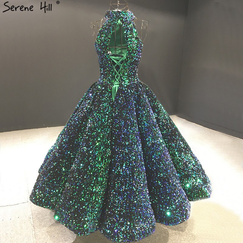 Vestido de noche verde, sexy, de lujo, hasta el tobillo, sin mangas, con lentejuelas brillantes, modelo 2025 (HA2063)