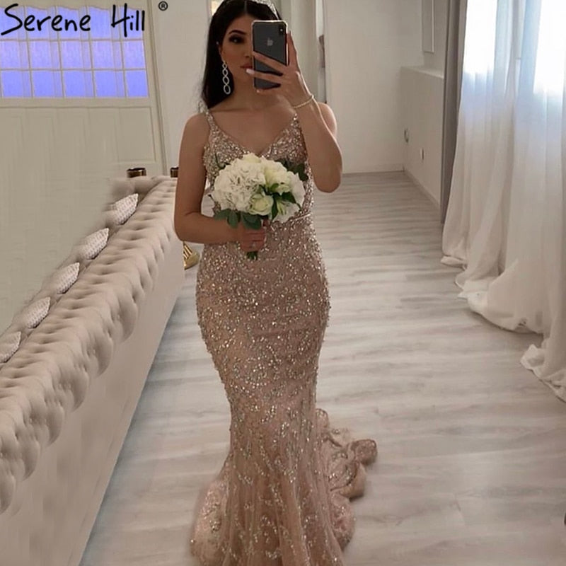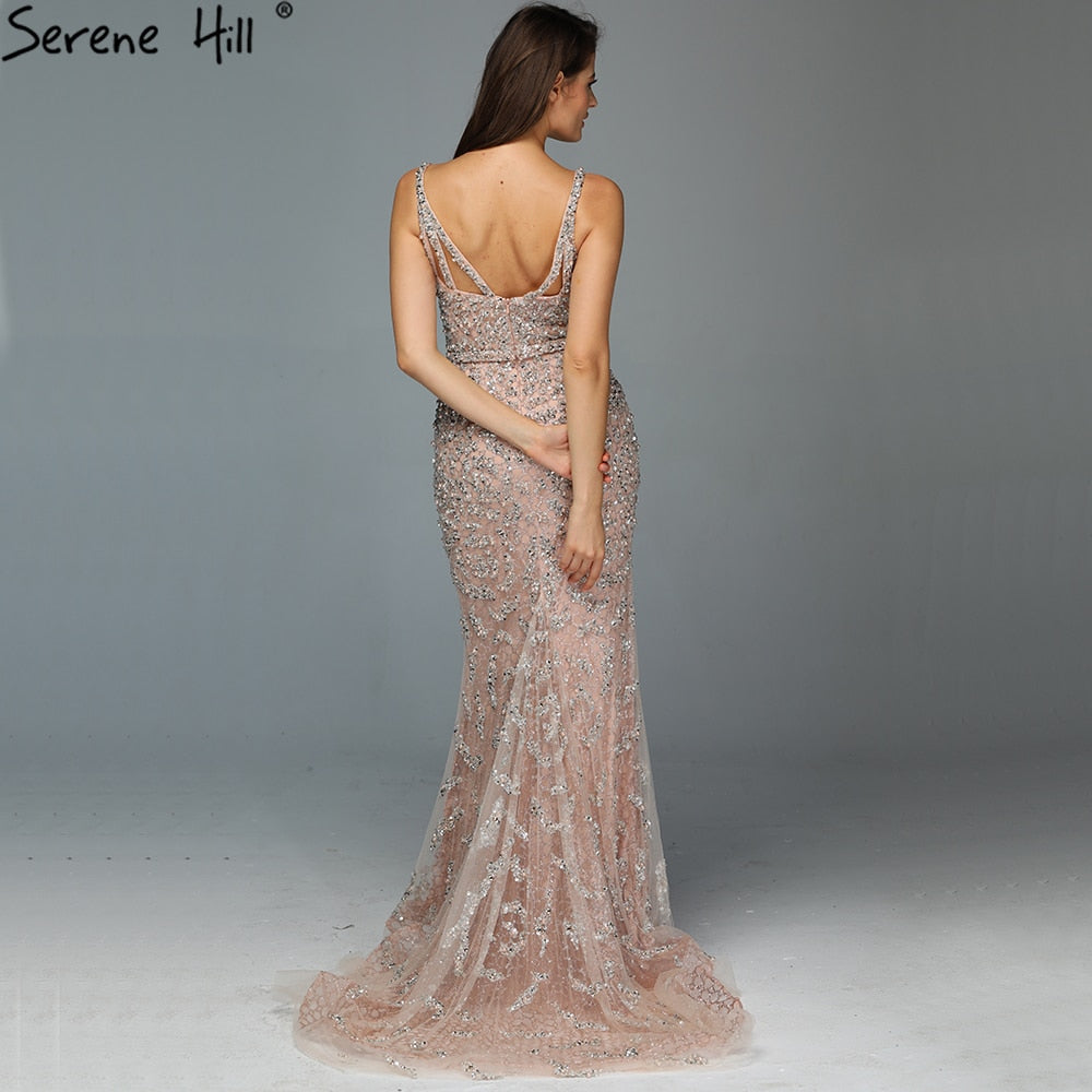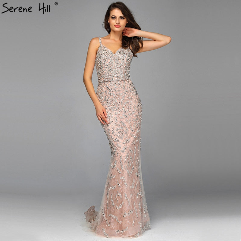 Vestido de noche de sirena sexy de lujo gris 2025 con cuentas de diamantes y hombros descubiertos. Foto real LA60729