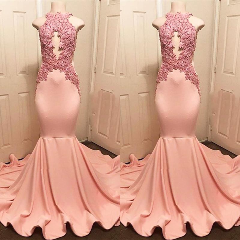Espacios: Jardín / Exterior Detalles de la espalda: Cremallera Temporada: Verano Escote: Halter Silueta: Sirena Estilo: Elegante Tipo de cuerpo: Señorita Largo de manga: Sin mangas Cintura: Baja Largo del dobladillo: Hasta el suelo Adorno: Encaje. Apliques