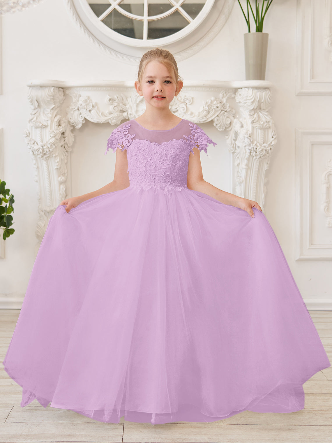 Vestido de niña de las flores para la Primera Comunión, color marfil, con cola desmontable estilo princesa.
