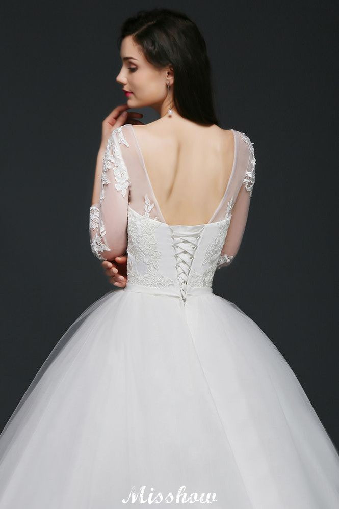 Catálogo: Vestidos de novia Código del artículo: B151030368149846 Espacios: Playa / Destino.Jardín / Exterior Detalles de la espalda: Con cordones Temporada: Primavera/Verano Escote: Redondo Material: Tul Silueta: Vestido de baile Tipo de cuerpo: Señorita Tren: Tren de barrido/cepillado Largo de manga: Mangas de 3/4 Cintura: Imperio Largo del dobladillo: Hasta el suelo Adorno: Encaje