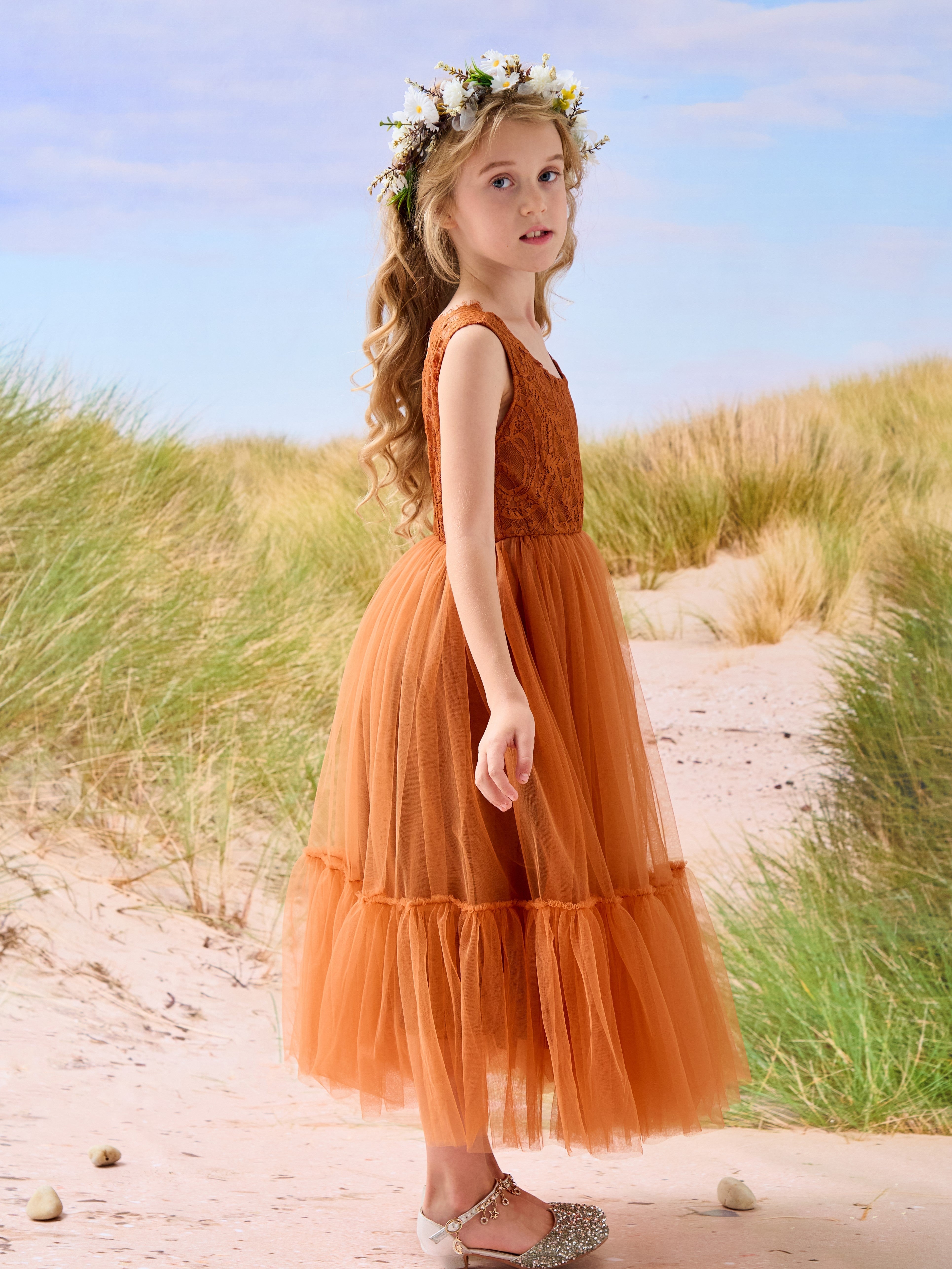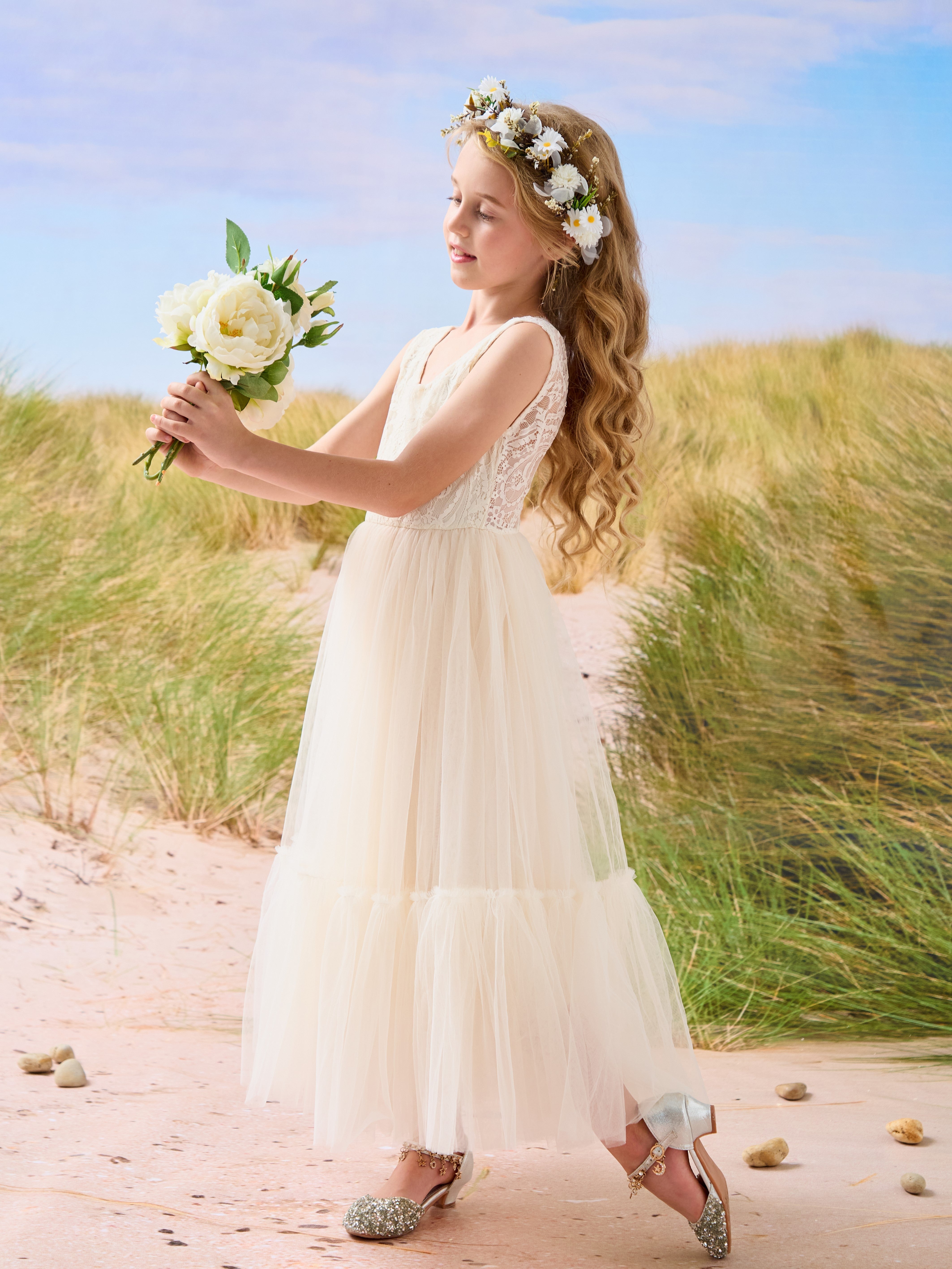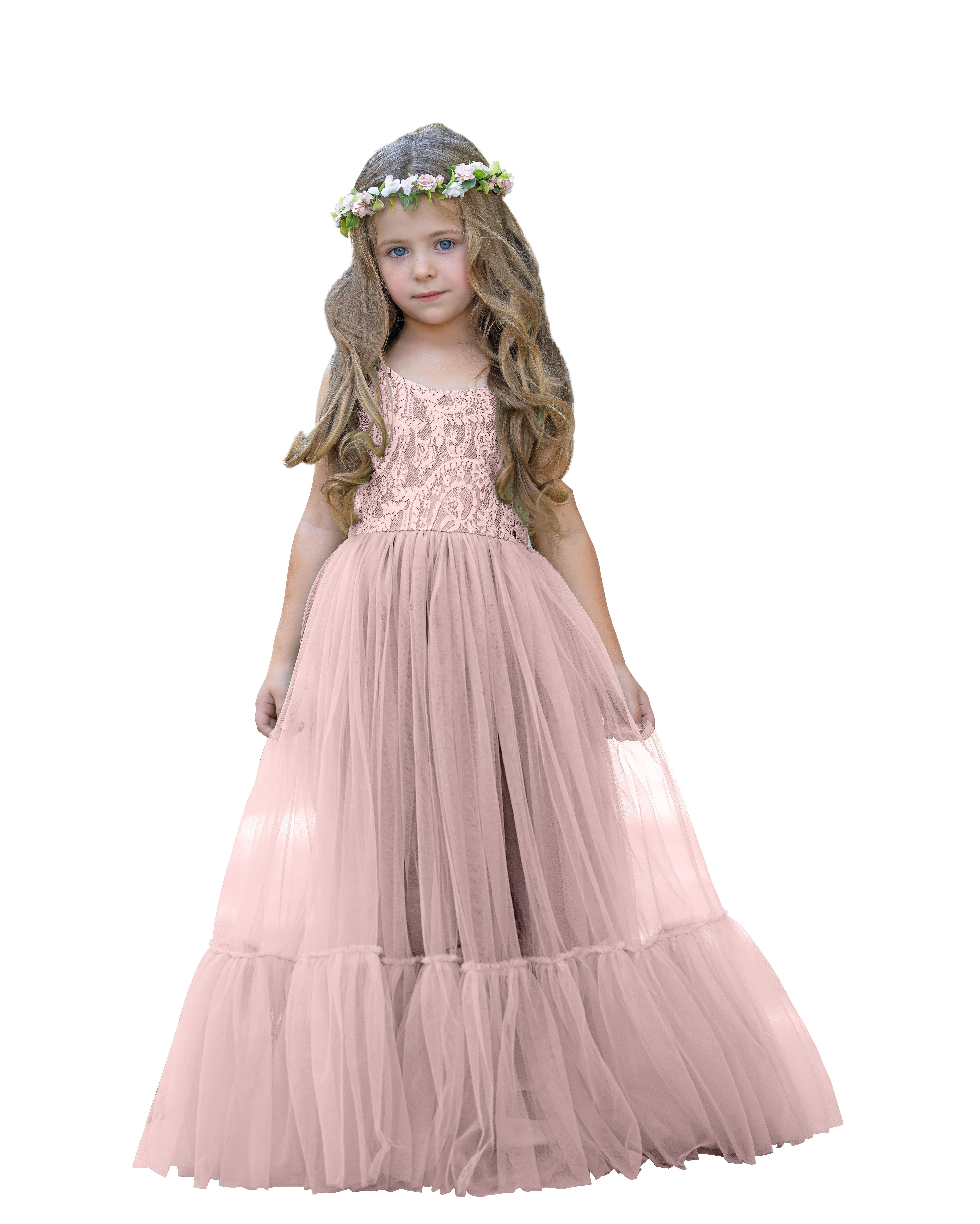 Vestido largo de tul y encaje estilo boho para niña de las flores