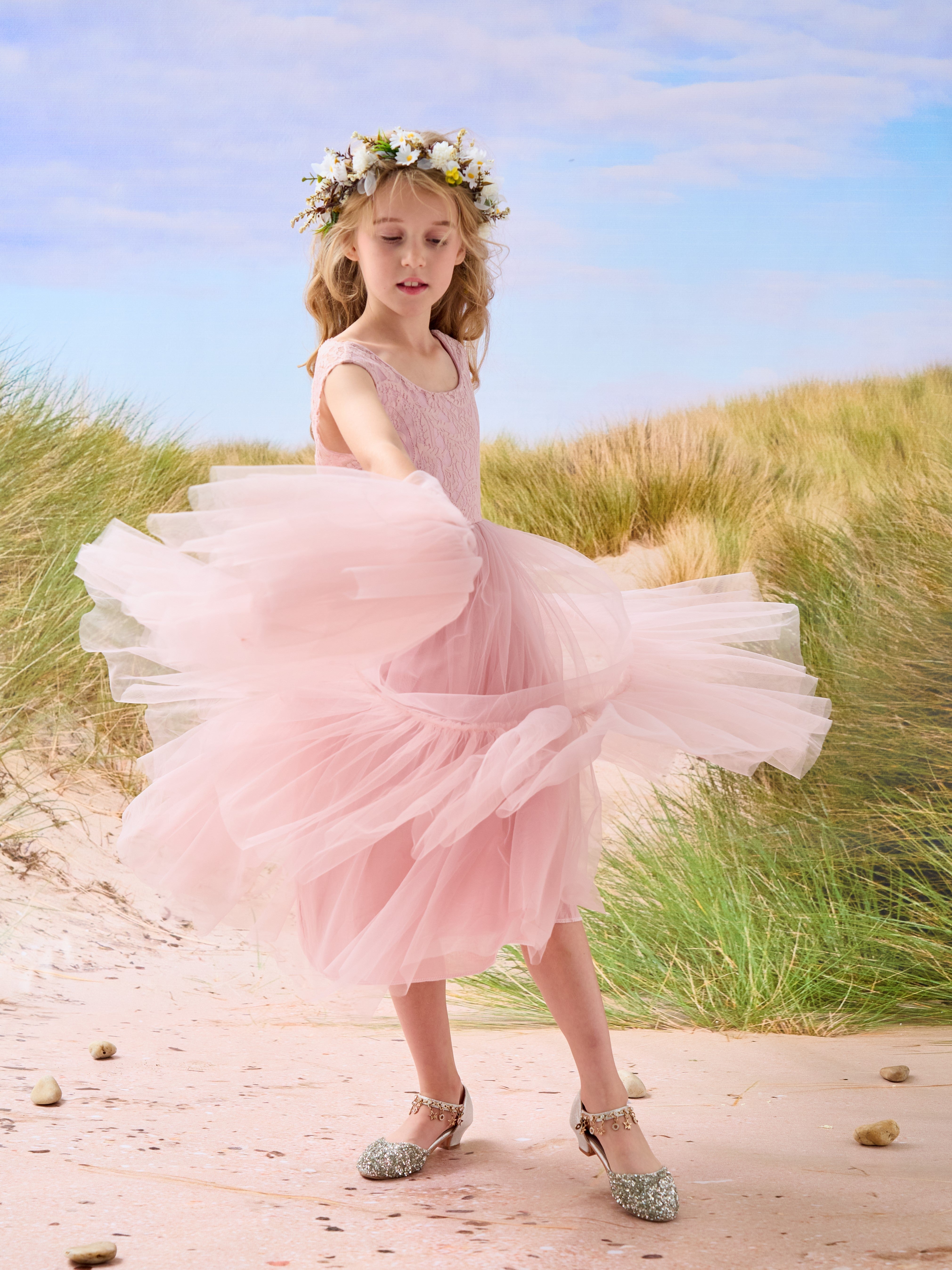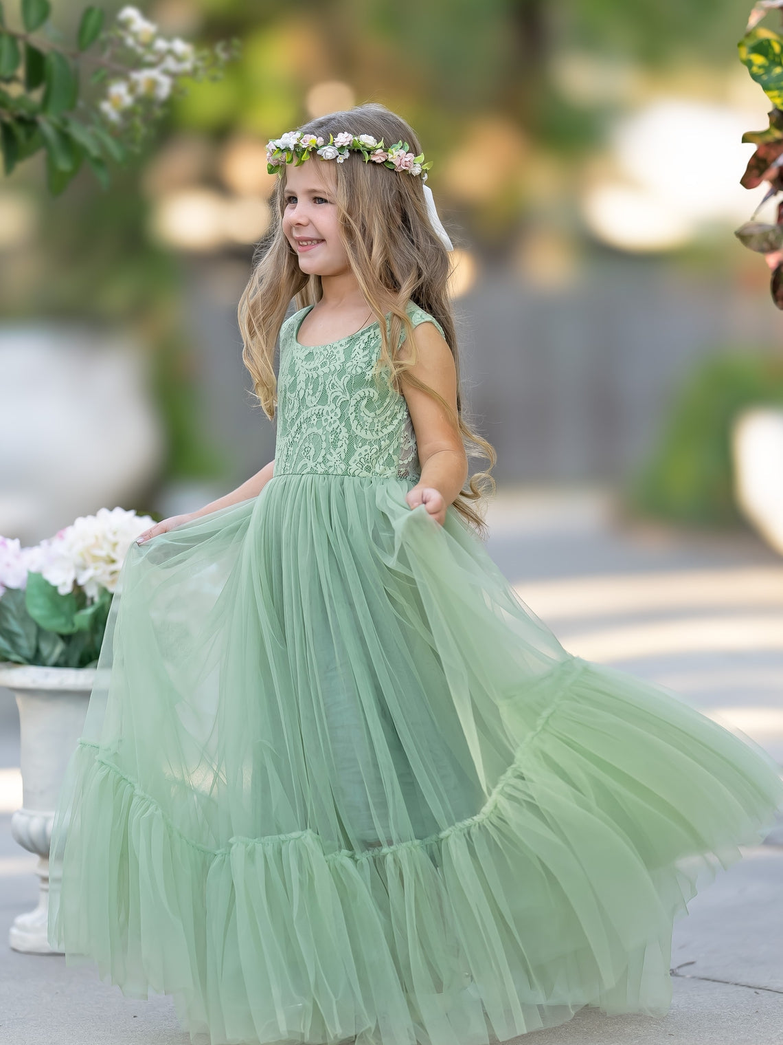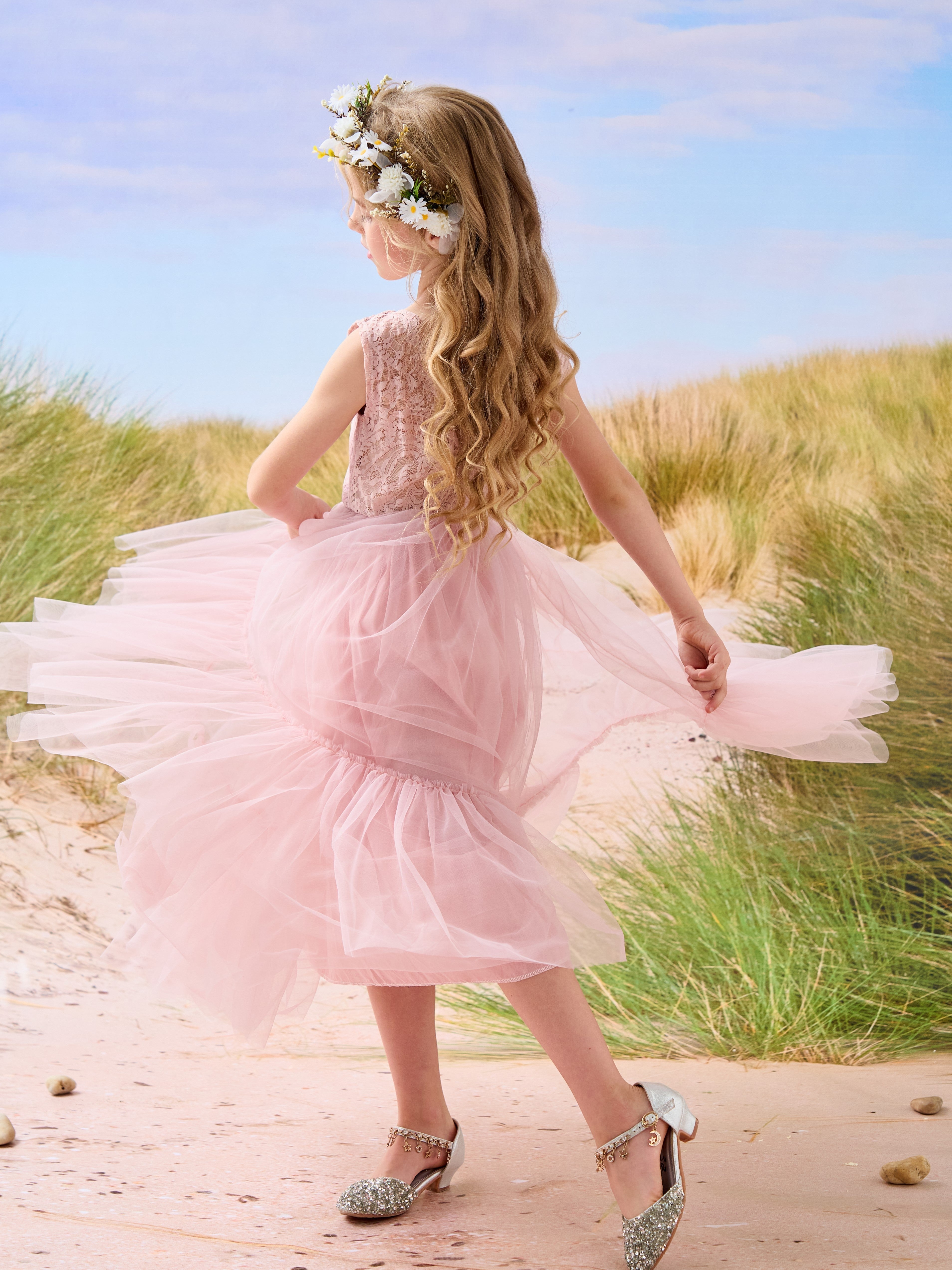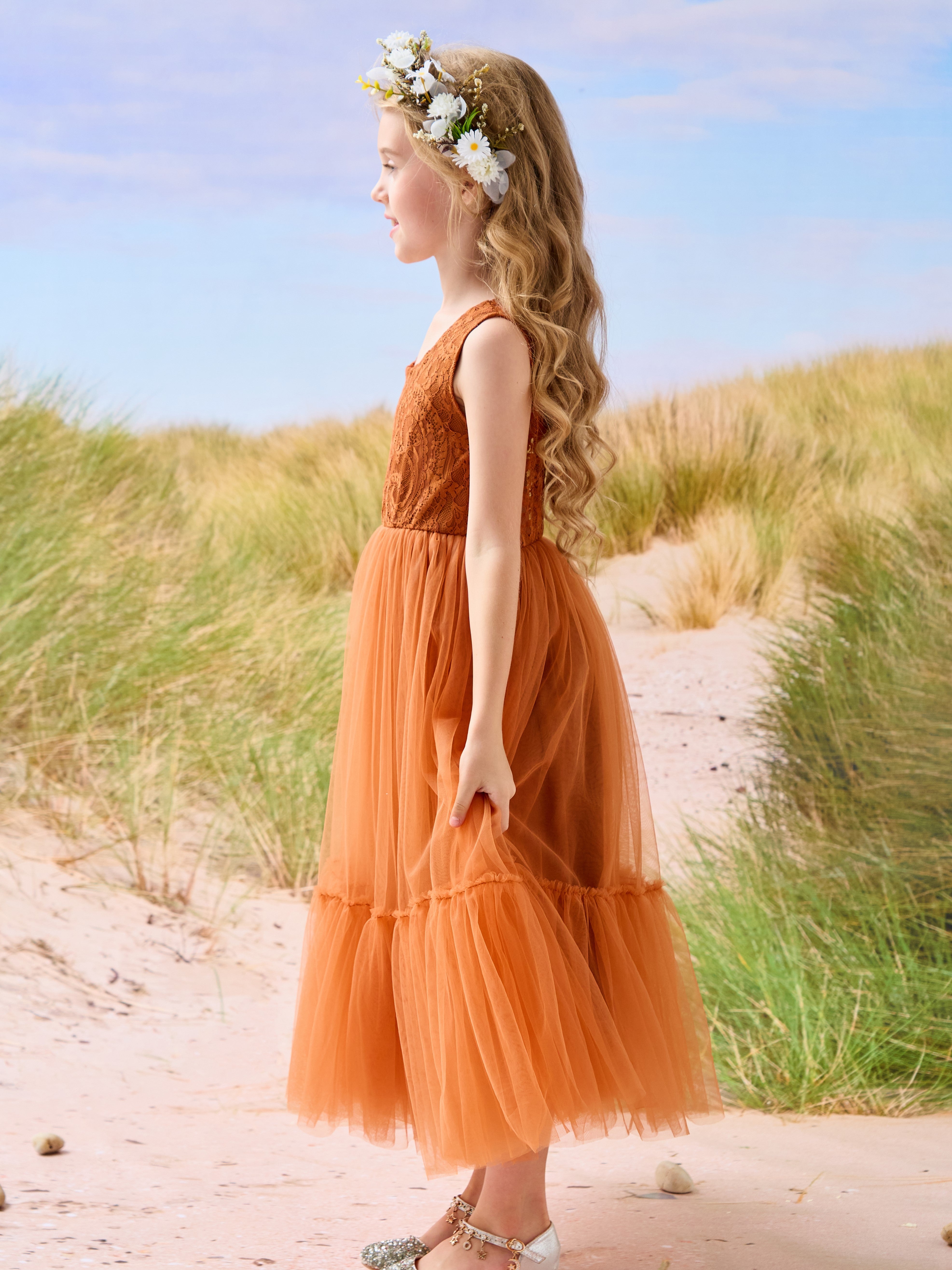 Vestido largo de tul y encaje estilo boho para niña de las flores