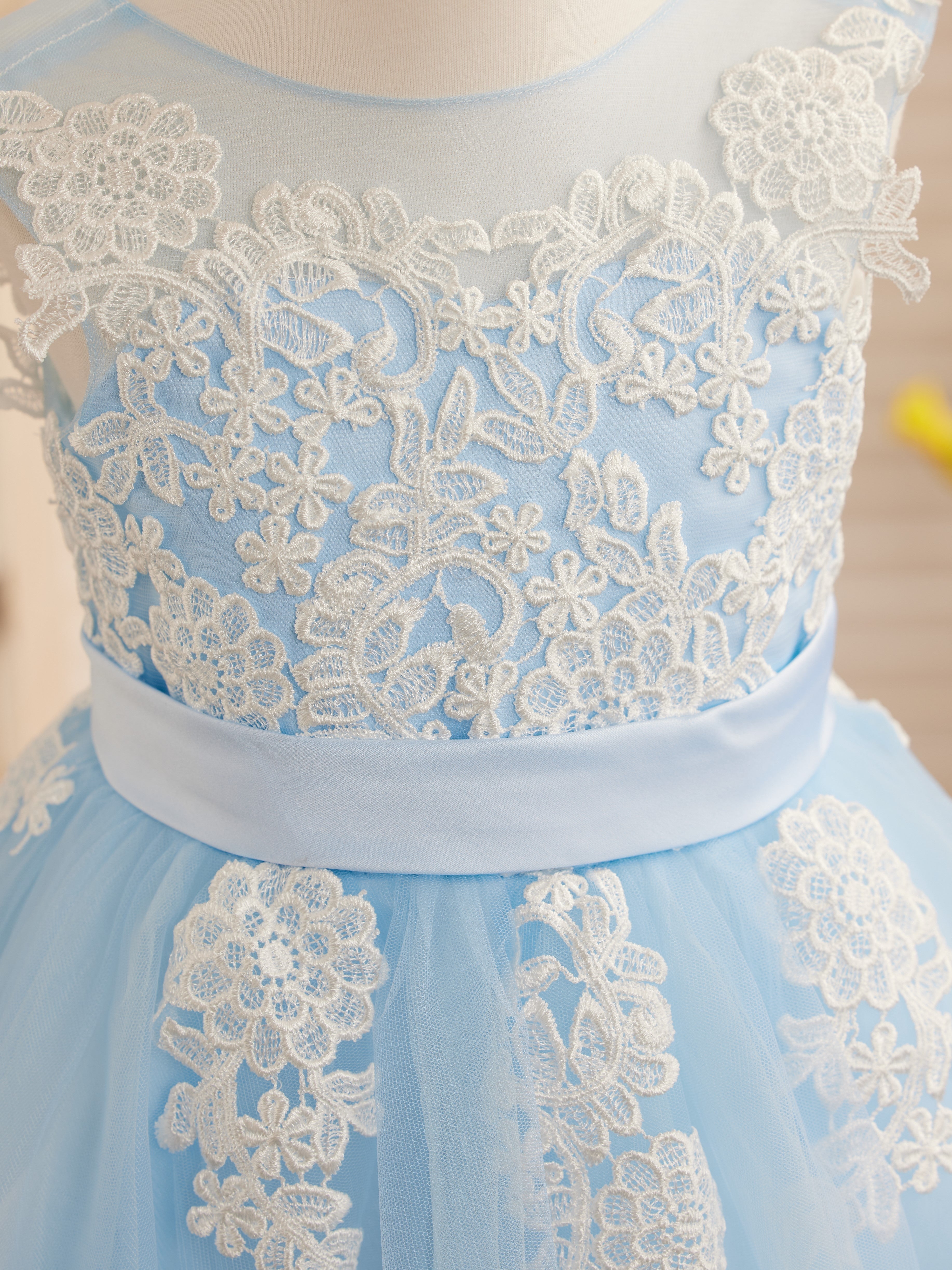 Vestido morado de tul y encaje hasta la rodilla (2003227696)