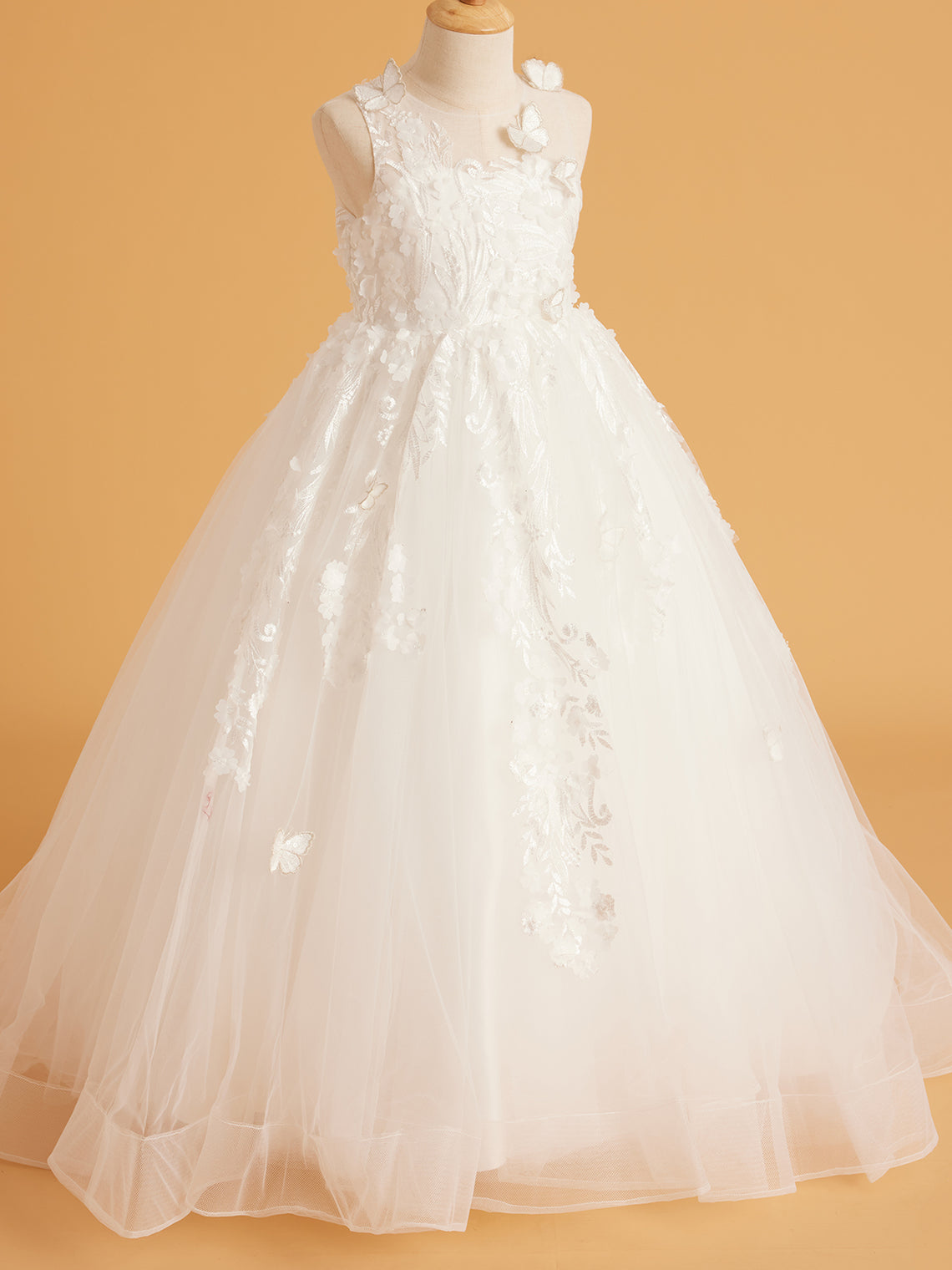 Vestido color marfil con cola de tul y encaje (2003227822)