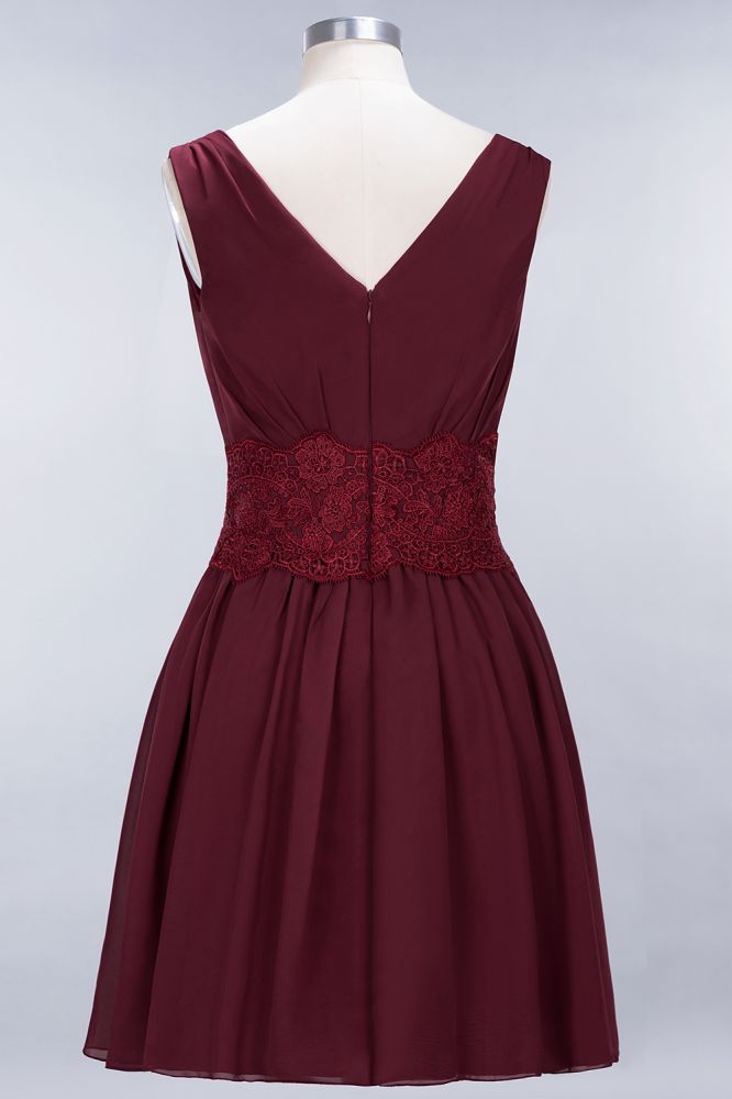 Código del artículo: D154329129693989 Catálogo: Vestidos de dama de honor Detalles de la espalda: Cremallera Temporada: Primavera.Verano.Otoño.Invierno Escote: Escote en V Material: Gasa 100D Silueta: Línea A Estilo: Elegante Tipo de cuerpo: Señorita Largo de manga: Sin mangas Cintura: Natural Largo del dobladillo: Mini Adorno: Encaje