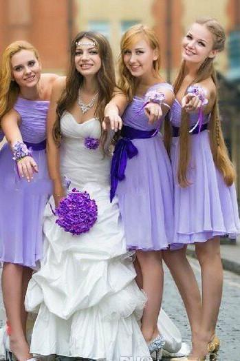 Vestidos cortos de dama de honor de gasa lavanda con un solo hombro, vestidos para fiesta de bodas