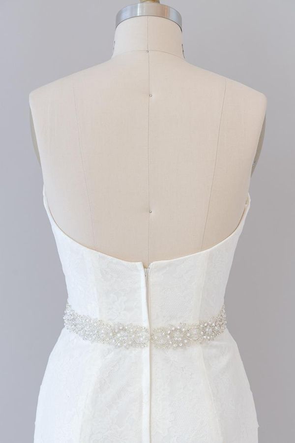 Espacios: Playa / Destino.Iglesia.Jardín / Salón al aire libre Detalles de la espalda: Cremallera Temporada: Primavera.Verano.Otoño.Invierno Escote: Sin tirantes Material: Tul. Encaje Silueta: Sirena Forma del cuerpo: Plus. Tren: Tren capilla. Largo de manga: Sin mangas Cintura: Natural Largo del dobladillo: Hasta el suelo Adornos: Encaje, perlas, diamantes de imitación