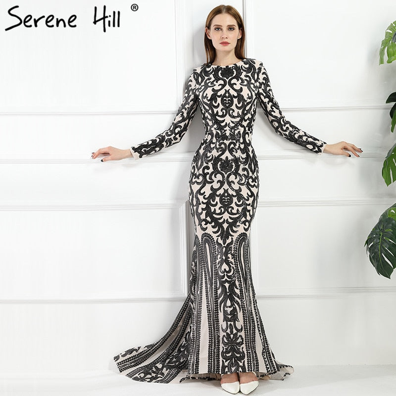 Ocasión: Noche formal Tipo de artículo: Vestidos de noche Decoración: Lentejuelas. Abalorios. Escote: Redondo Sujetador incorporado: Sí Marca: SERENE HILL Cintura: Imperio Estilo de manga: Regular Elemento de moda: Vintage Tren: Ninguno Largo de manga (cm): Completo is_customized: No Material: Poliéster Imágenes reales: Sí Silueta: Trompeta / Sirena Tipo de tela: Tul Número de modelo: LA6196 Largo de los vestidos: Hasta el suelo