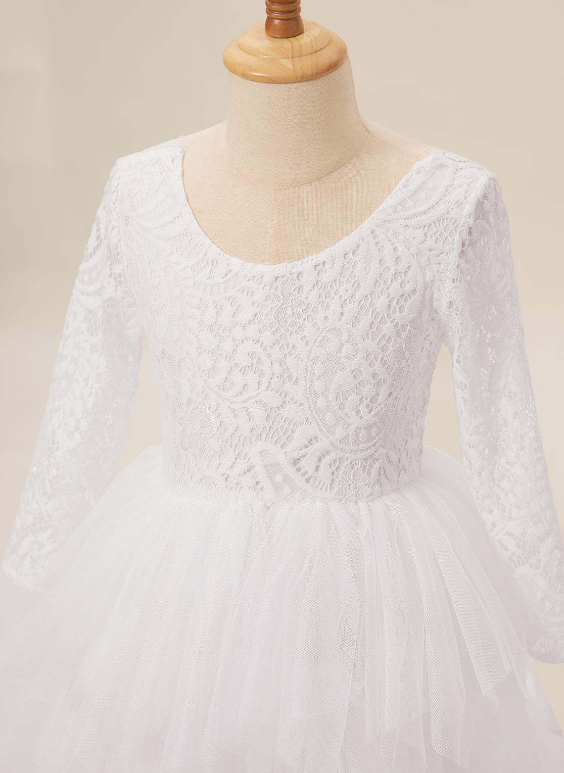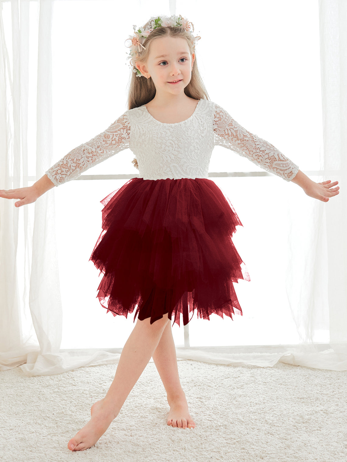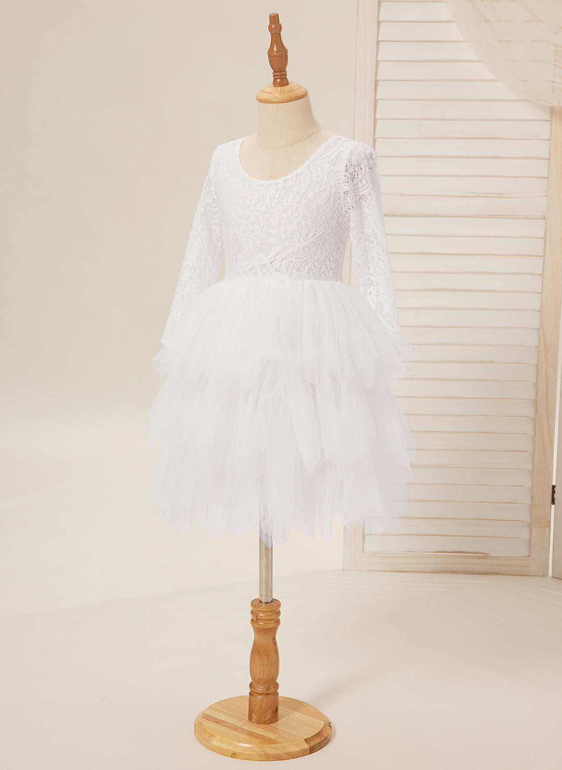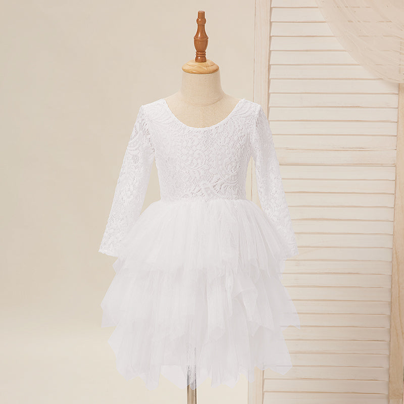 Vestido blanco de tul y encaje hasta la rodilla (2003227580)