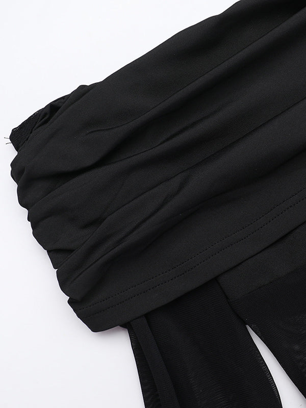 Vestidos largos de noche ajustados, plisados, transparentes, de color liso, con abertura en la entrepierna y hombros descubiertos.