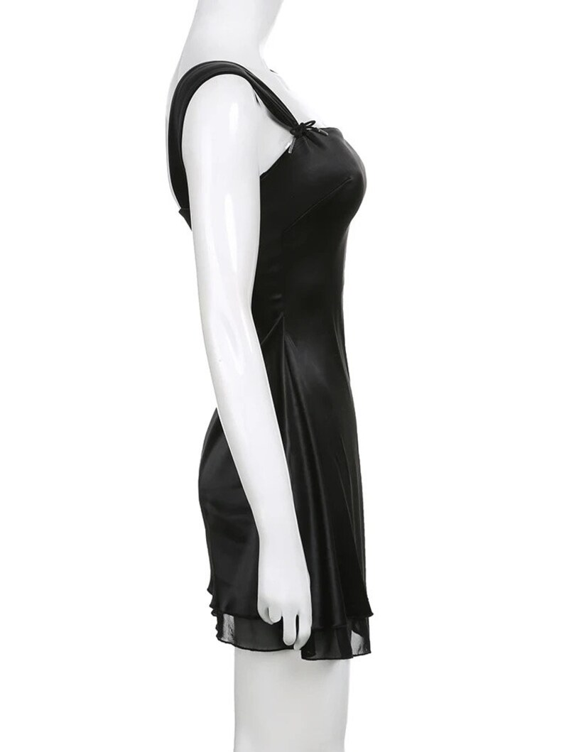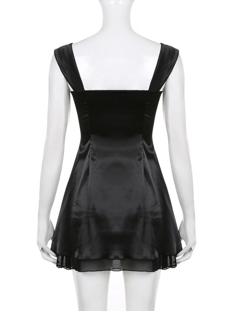Precioso vestido de fiesta de línea A con tirantes negros Y4035