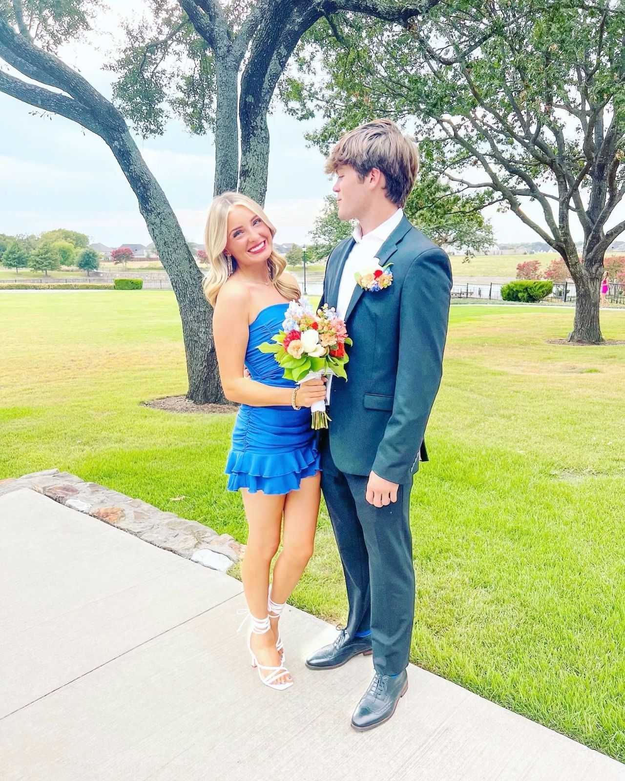 Precioso vestido de cóctel azul real sin tirantes para fiesta de bienvenida Y4330