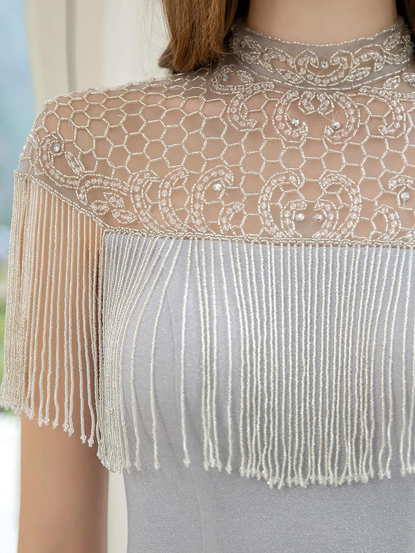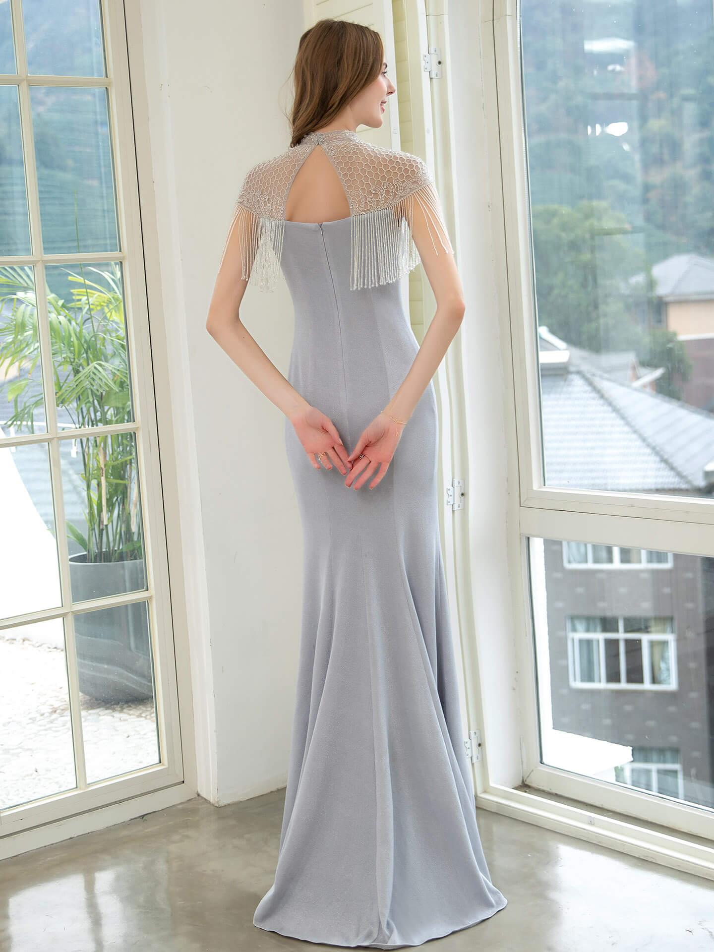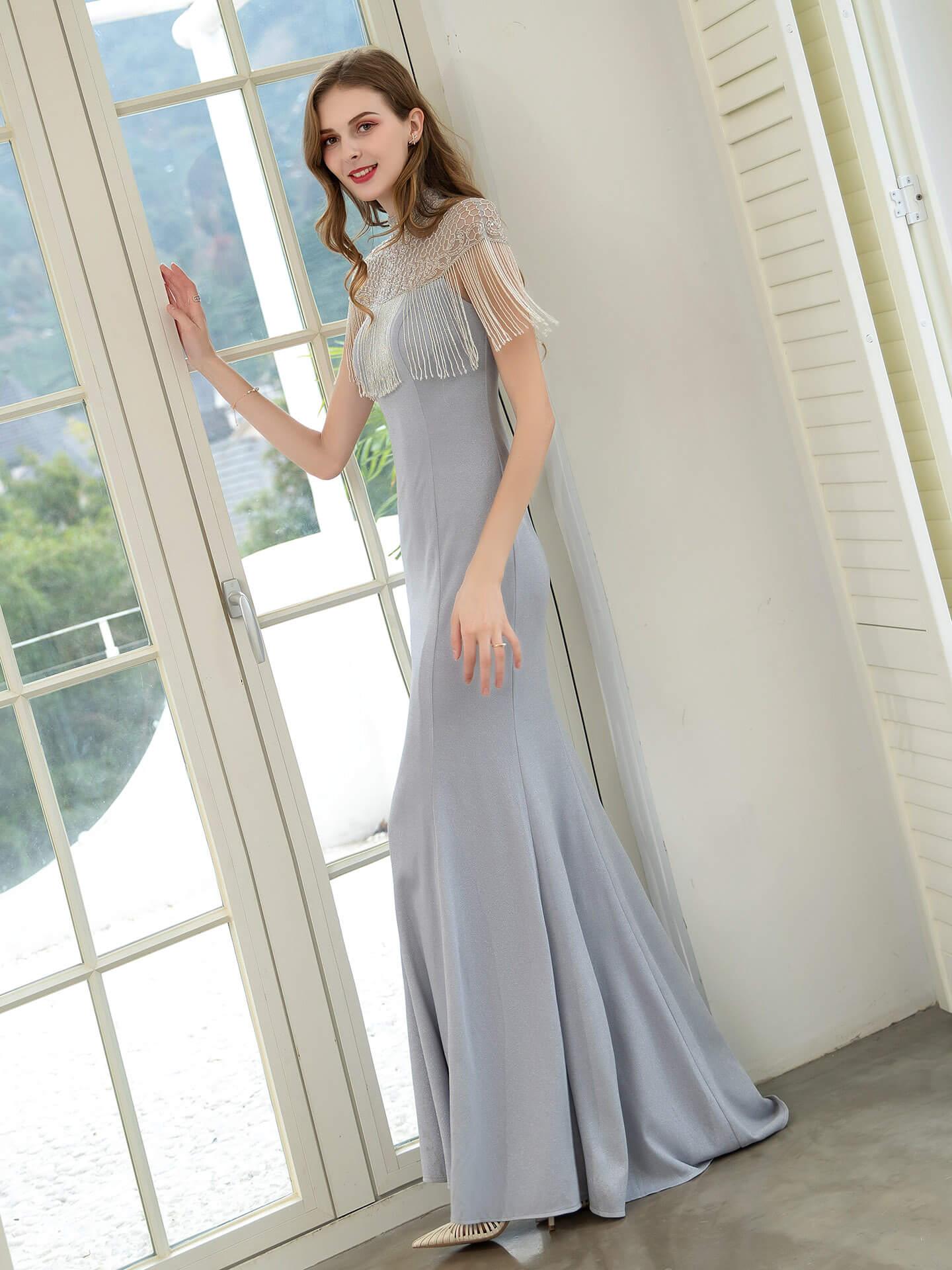 Vestido de noche formal de lujo con estampado de sirena y cuentas de Baoleely, manga corta y largo hasta el suelo.