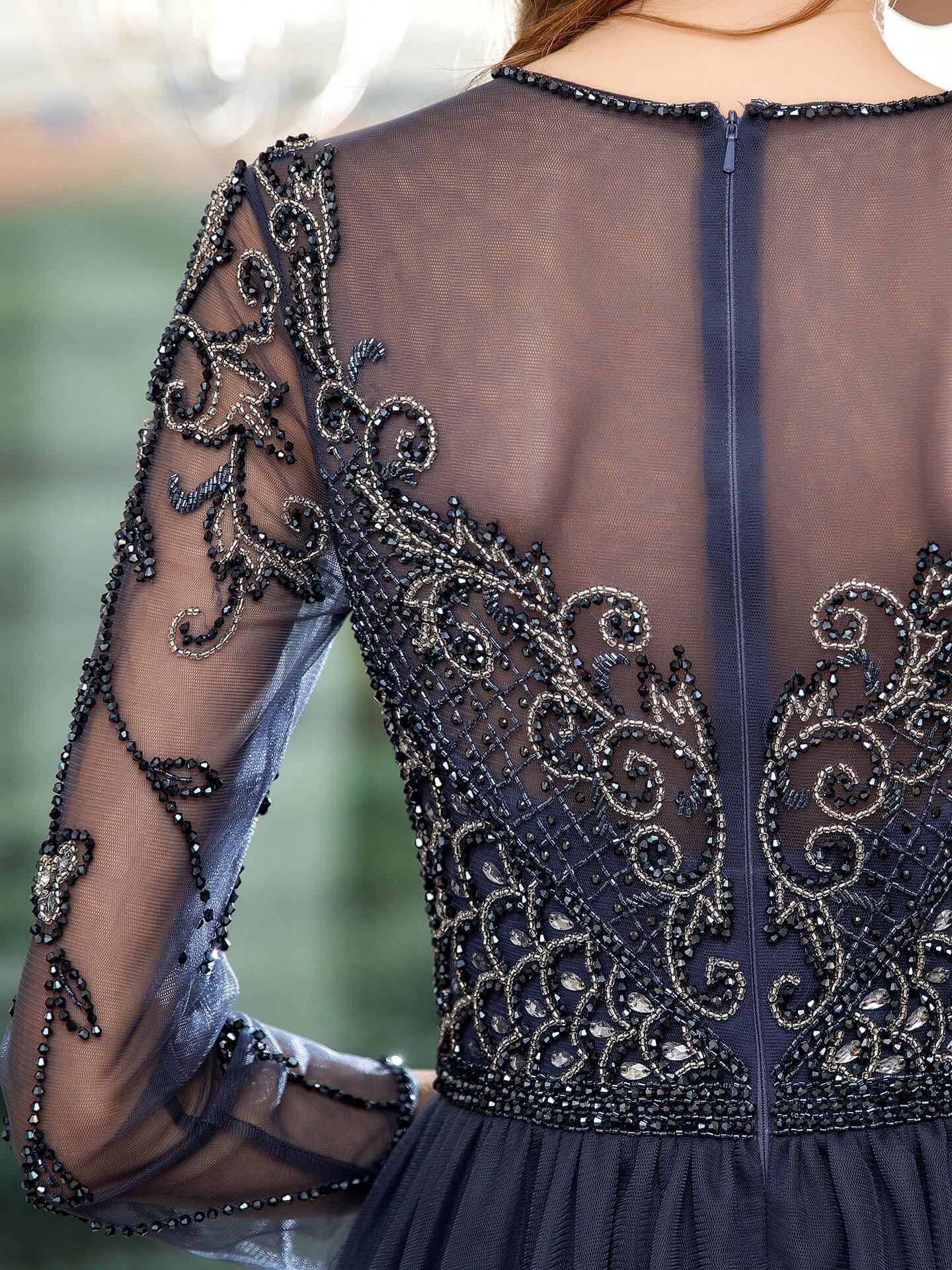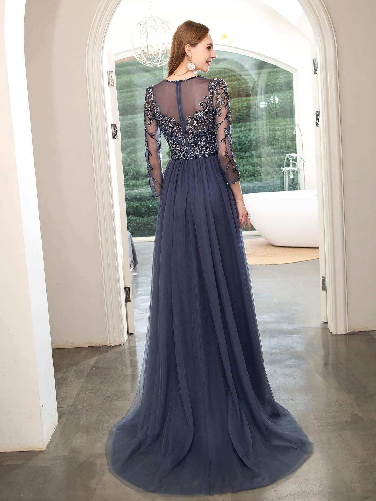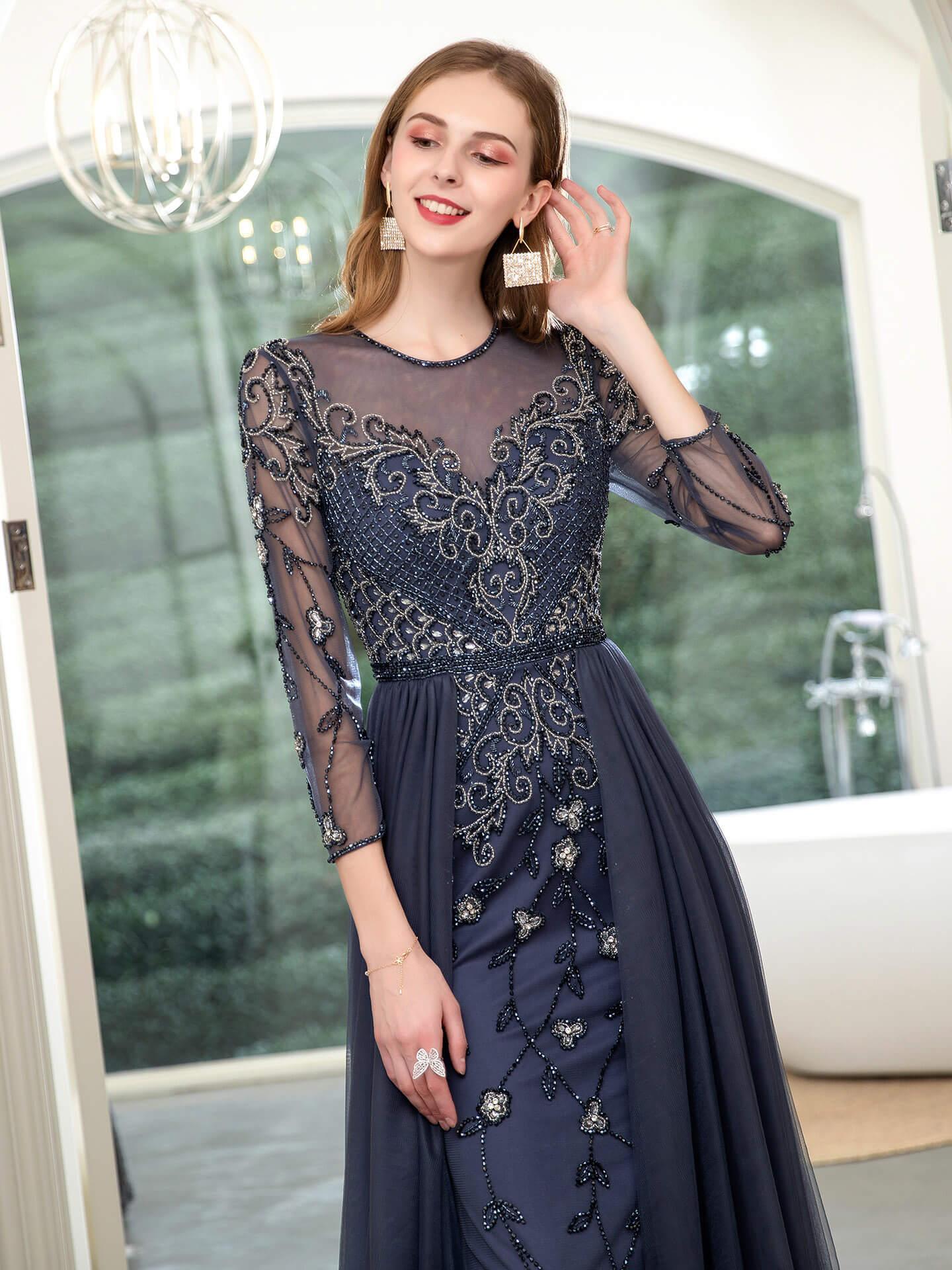 Vestido de noche formal de lujo con cuentas estilo sirena de Baoleely, manga larga hasta el suelo.