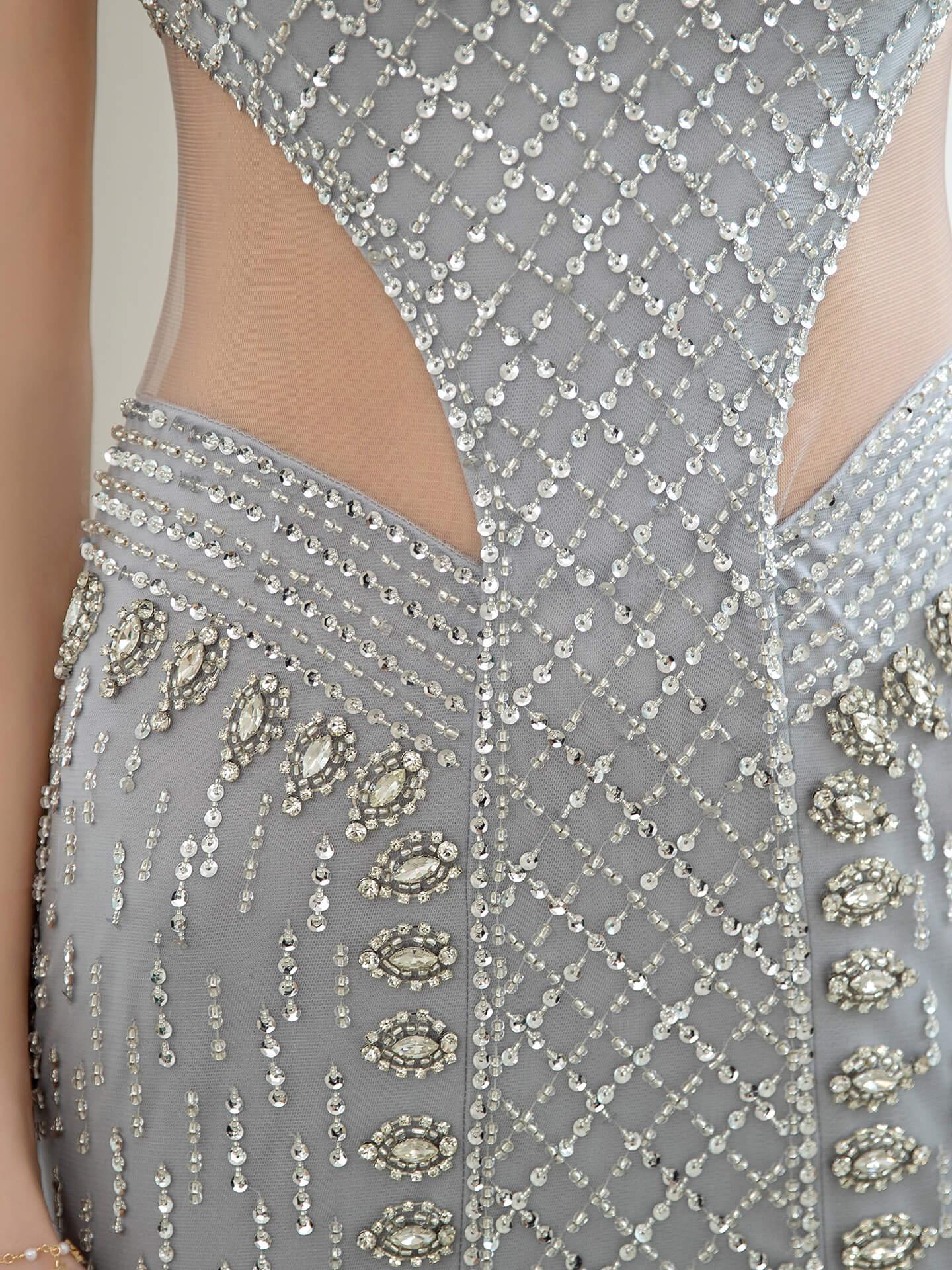 Vestido de noche formal de lujo con cuentas estilo sirena de Baoleely, sin mangas y hasta el suelo.