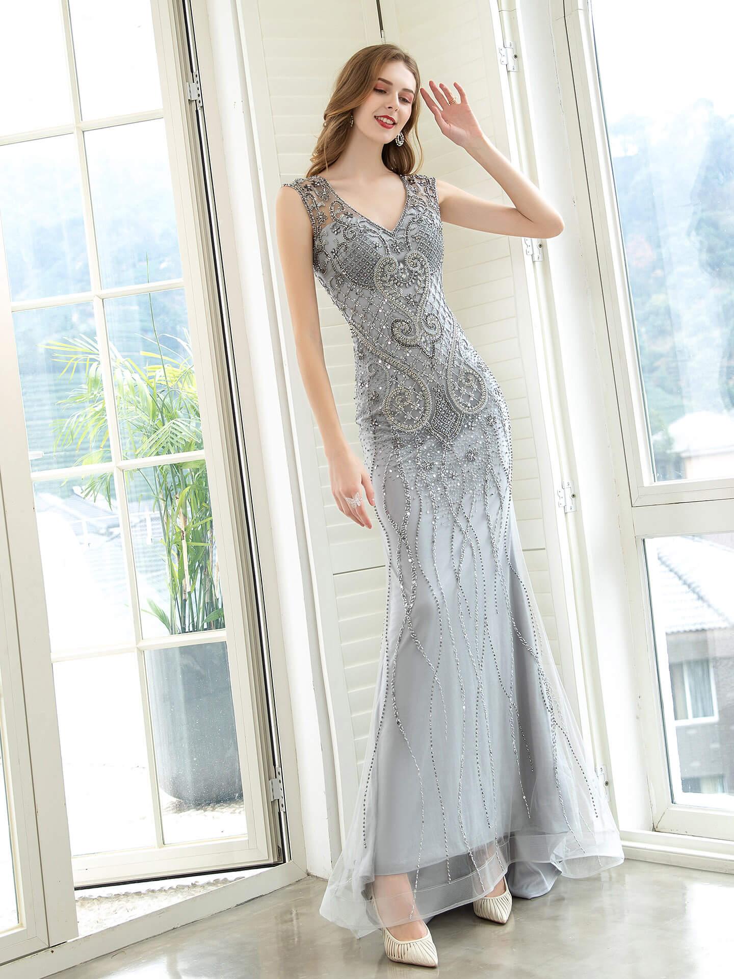 Vestidos de noche formales, sexis y lujosos de sirena/trompeta, estilo hada brillante, sin mangas, de Baoleely.