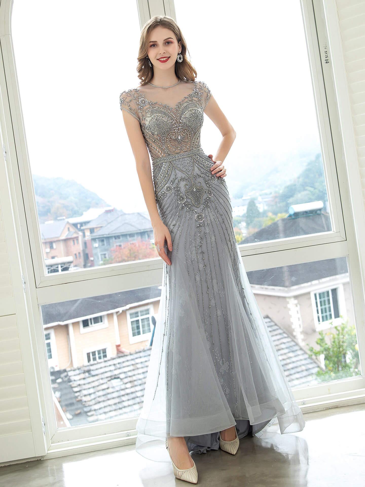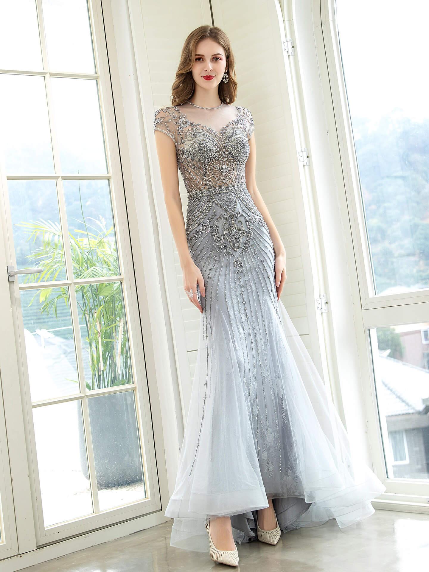 Baoleely Sirena / Trompeta Lujosos Vestidos de Noche Formales de Hada Brillantes y Sexys Manga Corta